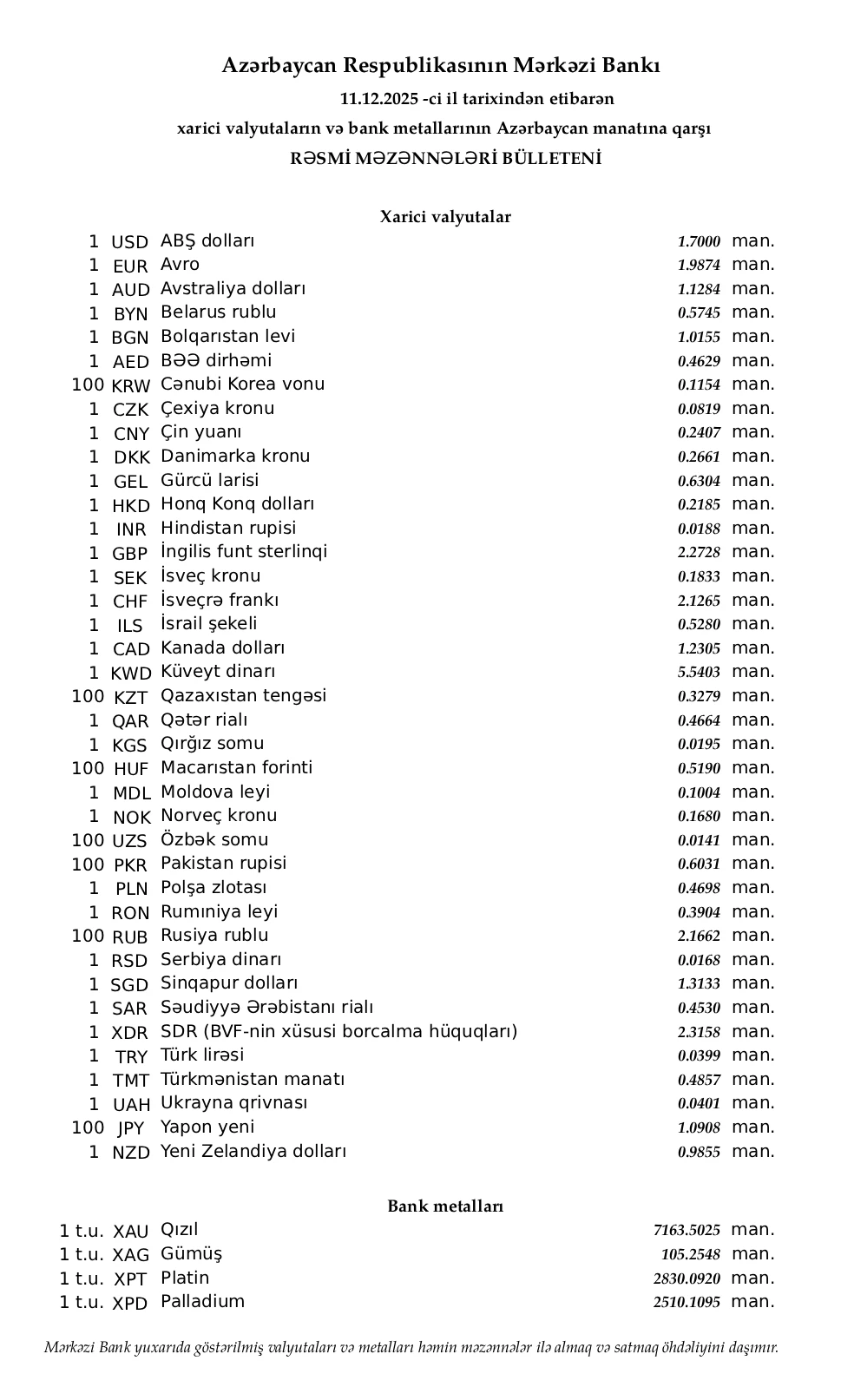 Bu mövzuda digər xəbərlər:Rəsmi məzənnələr açıqlandı