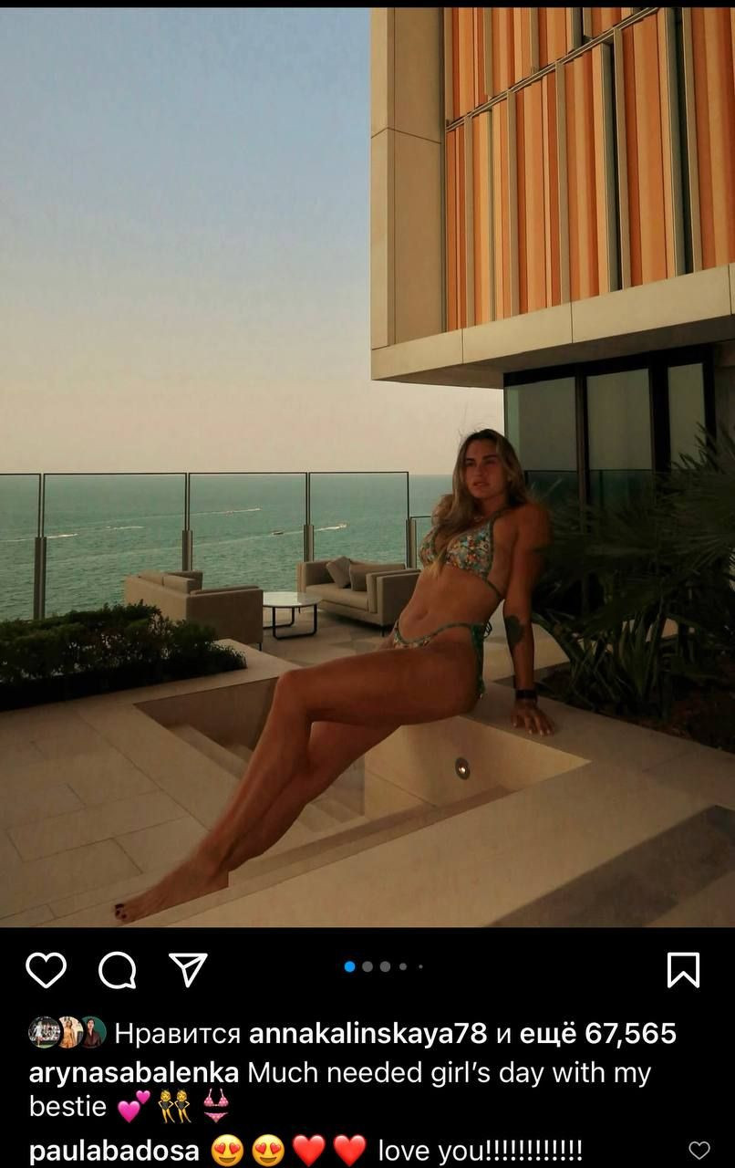 Sabalenka şəklin altına “Ən yaxşı rəfiqəmlə çox lazımi qızlar günündən” yazıb.