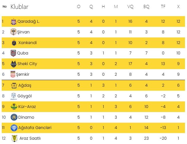 Azərbaycan 2-ci liqasında 5-ci tura yekun vurulub.
