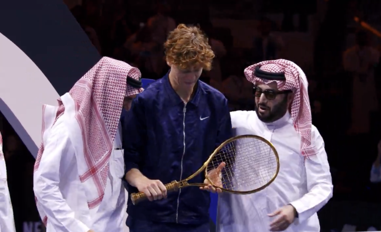 İtaliyalı tennisçi, dünyanın ikincisi raketkası Yannik Sinnerə “Six Kings Slam” turnirinin qalibi olduğu üçün qızıl raketka hədiyyə ediblər.