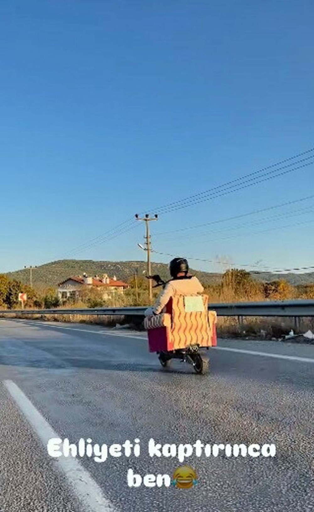 Bostan sosial media hesabında yumoristik yanaşma ilə oturacaq skuterlə səyahətinin videosunu "Sürücülük vəsiqəmi itirəndə mən" ifadəsi ilə paylaşıb.