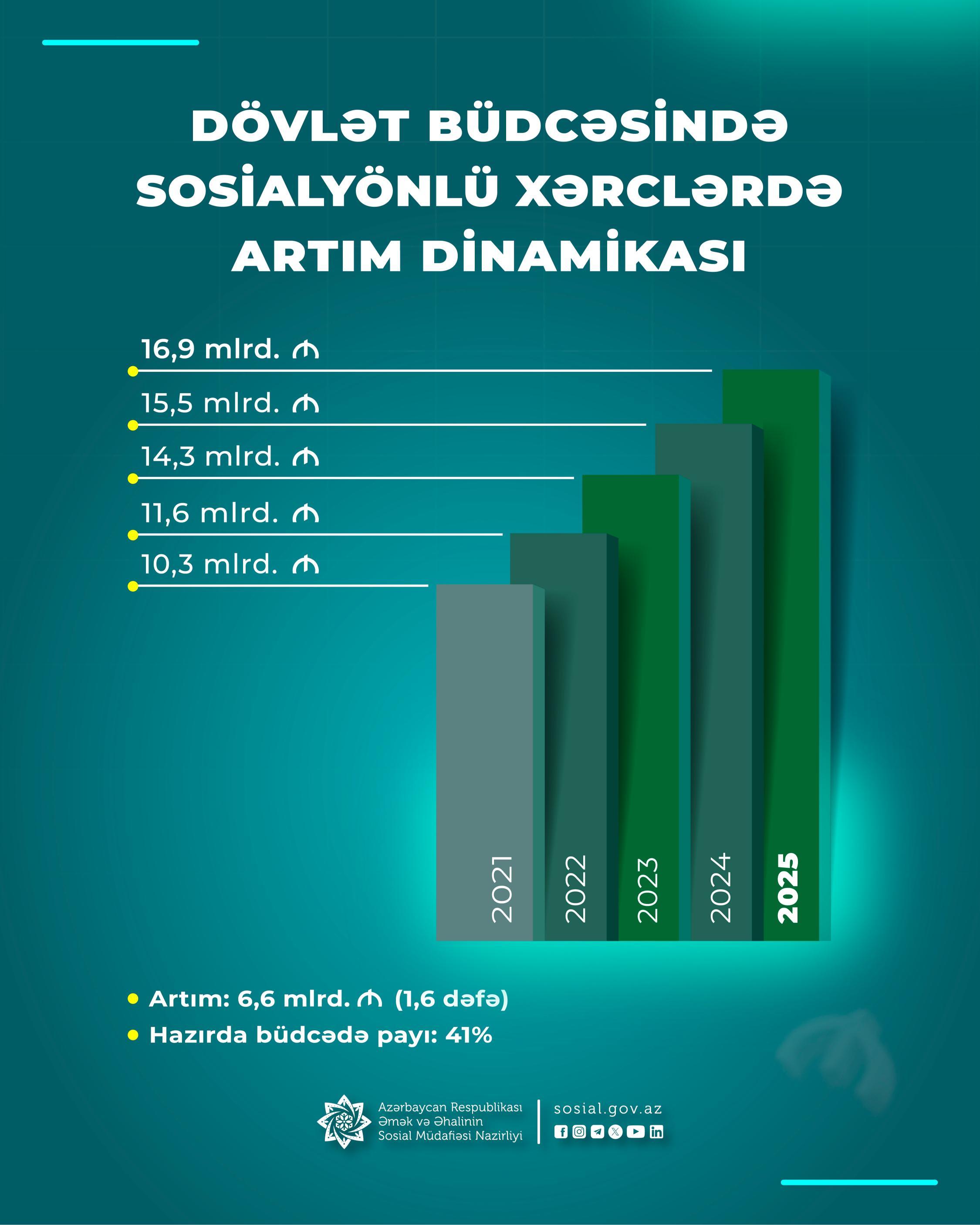"Azərbaycan xalqı ildən-ilə daha yaxşı yaşamalıdır. Bizim artan iqtisadi gücümüz ölkəmizin güclənməsinə, ilk növbədə, xalqımızın rifah halının yaxşılaşmasına yönəlməlidir və biz bunu edirik", - deyən Prezident cənab İlham Əliyevin tapşırıqları əsasında 2018-2025-ci illərdə ardıcıl olaraq 5 sosial islahat paketi reallaşdırılıb. 4 milyondan çox vətəndaşı əhatə edən, illik əsasda əlavə olaraq 7,6 mlrd. manat vəsaitin ayrıldığı bu sosial islahatlar nəticəsində 2018-ci ildən ötən dövrdə minimum pensiya 3 dəfəyə yaxın artırılaraq 110 manatdan 320 manata, minimum əməkhaqqı 3,1 dəfə artırılaraq 30 manatdan 400 manata çatdırılıb.