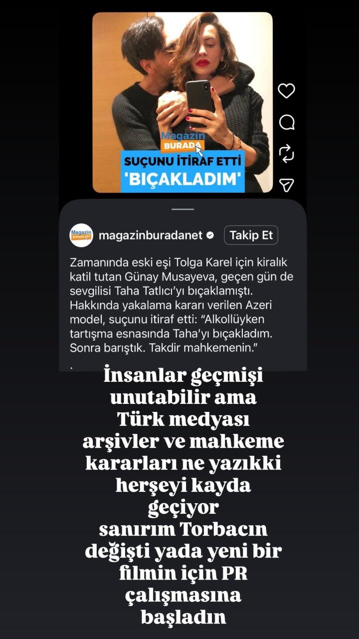 Tolqa Karel isə İnstaqramda, hekayə bölməsində haqqında səslənən fikirlərin şər-böhtan olduğunu söyləyib. O, Günayın zərərli vərdişləri olduğuna eyham vurub.