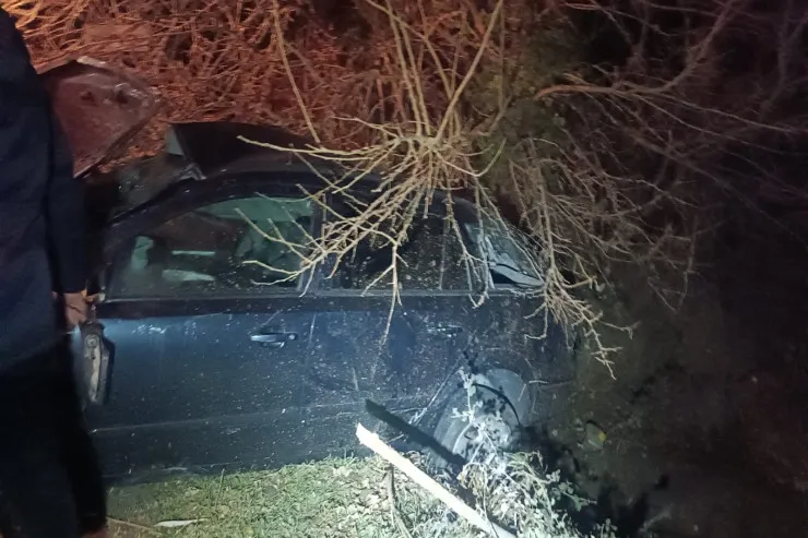 Tovuzda avtomobil ağaca çırpıldı, sürücü ağır yaralandı
