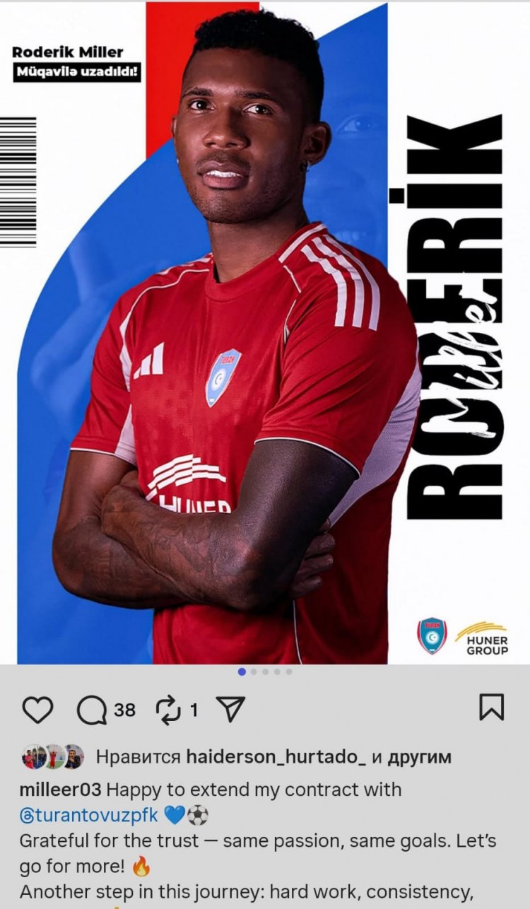 "Turan Tovuz" Panama millisinin üzvü Roderik Millerlə müqavilə müddətini artırıb.