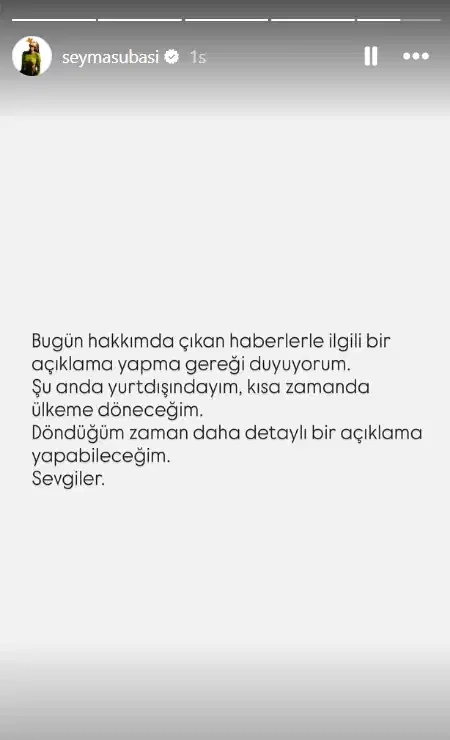 BAKU.WS xəbər verir ki, adı çəkilən məşhurlar hələ də gündəm yaratmağa davam edirlər. Belə ki, Şeyma Subaşı axtarışa verilməsi ilə bağlı sosial şəbəkədə status paylaşıb.