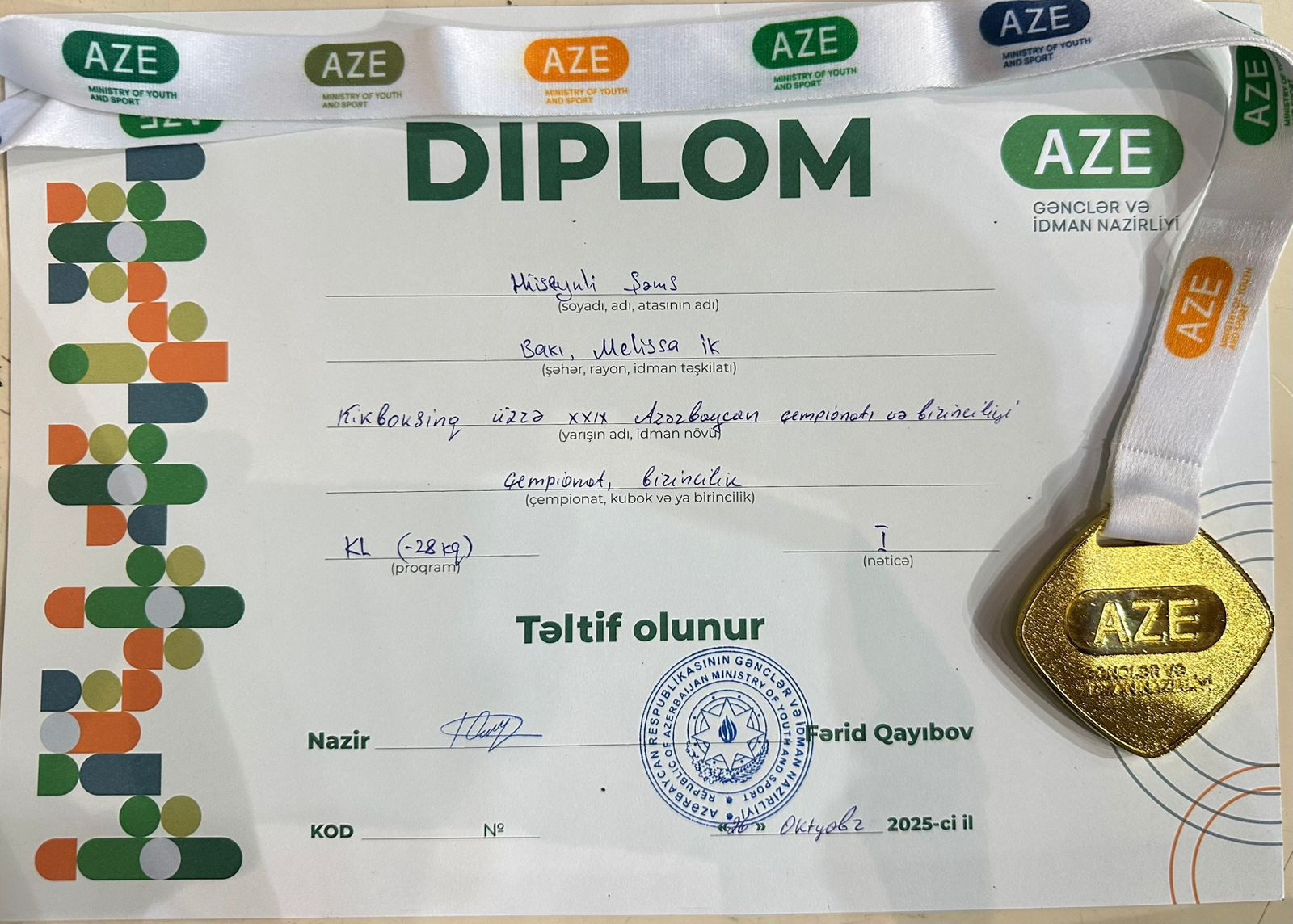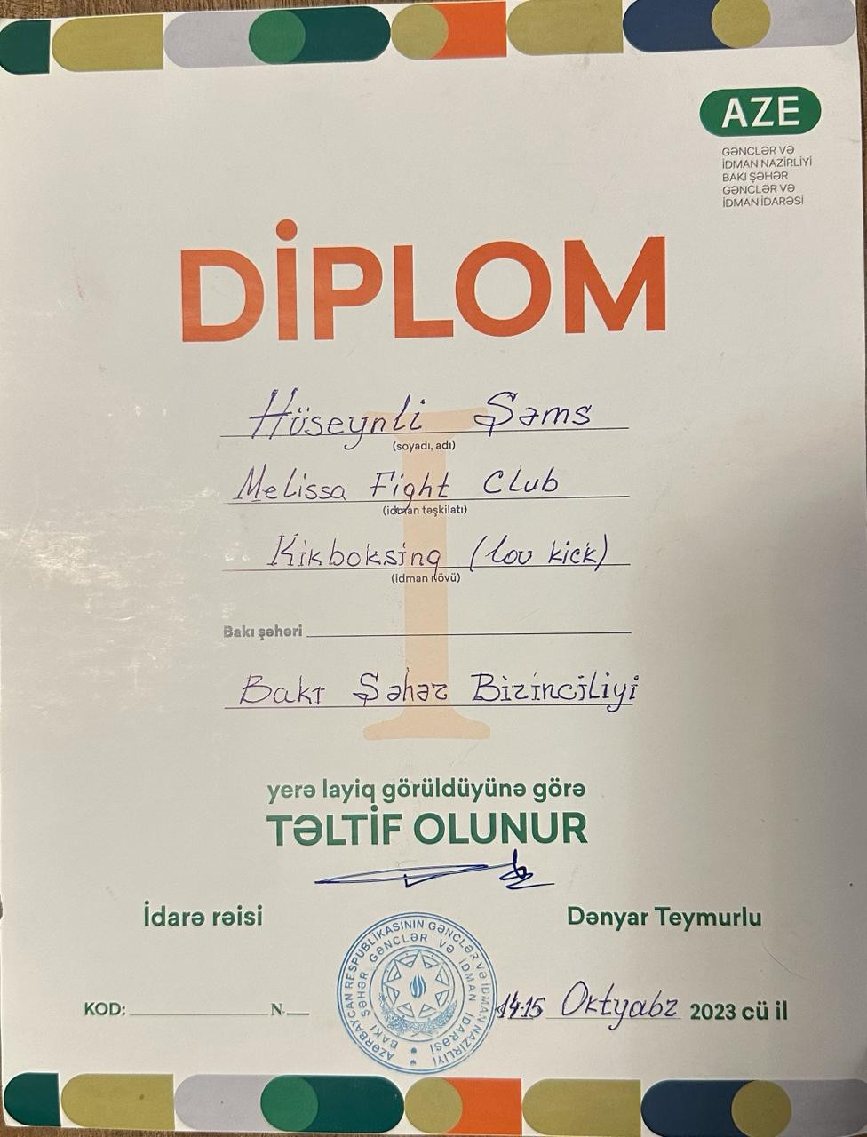Xəyal Hüseynovun sözlərinə görə, Şəms 2023-cü ildə 2024-cü ildə Macarıstanda keçiriləcək WAKO Gənclərarası Kikboksinq üzrə Dünya Çempionatında iştirak etmək üçün lisenziya qazanıb. Lakin o, qızını bu yarışa buraxmayıb: