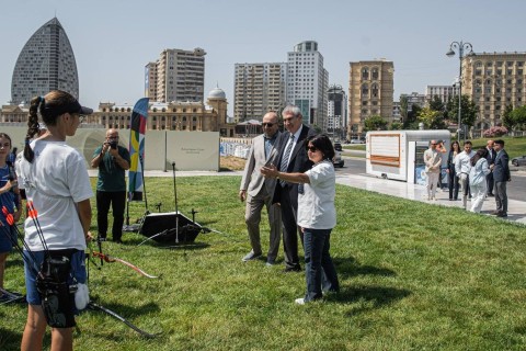 Azərbaycan Oxatma Federasiyası Heydər Əliyev Mərkəzinin qarşısında açıq havada məşq təşkil edib.