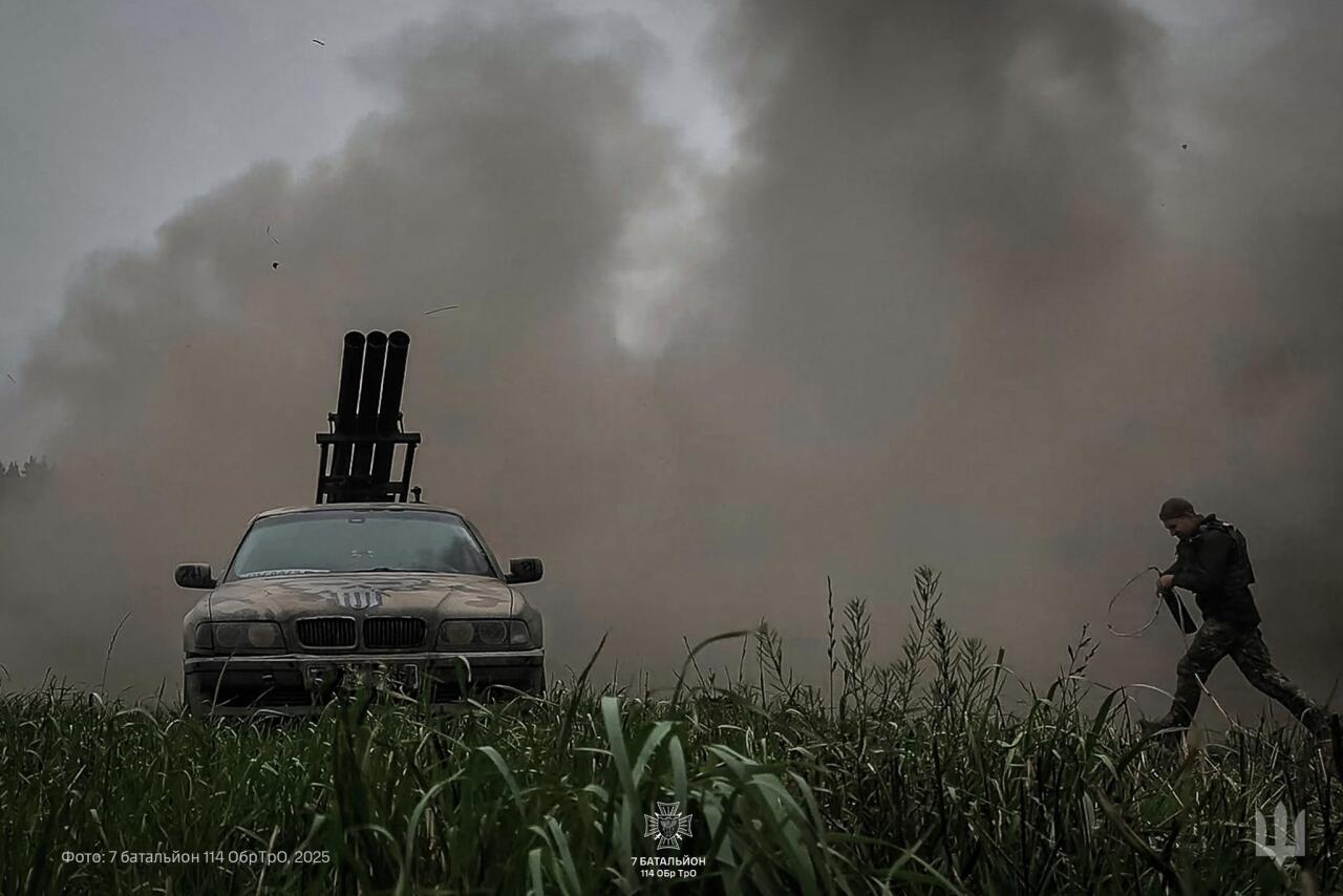 Ukrayna ərazi müdafiə bölmələri Baxmut yaxınlığında mülki BMW 7-series sedanını improvizə edilmiş çoxlüləli raket atəşi sisteminə çevirərək döyüşlərdə istifadə edir.