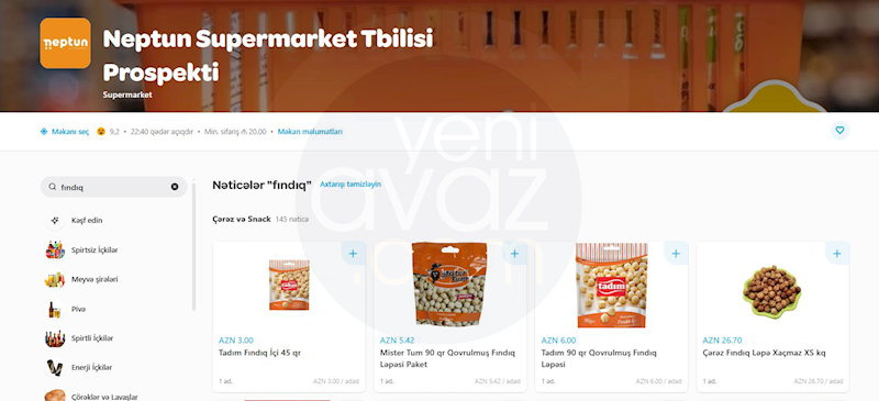 Başqa bir marketin – “Neptun”un onlayn satış platformasında isə fındıq ləpəsinin bir kiloqramı 26,7 manatdan satılır.