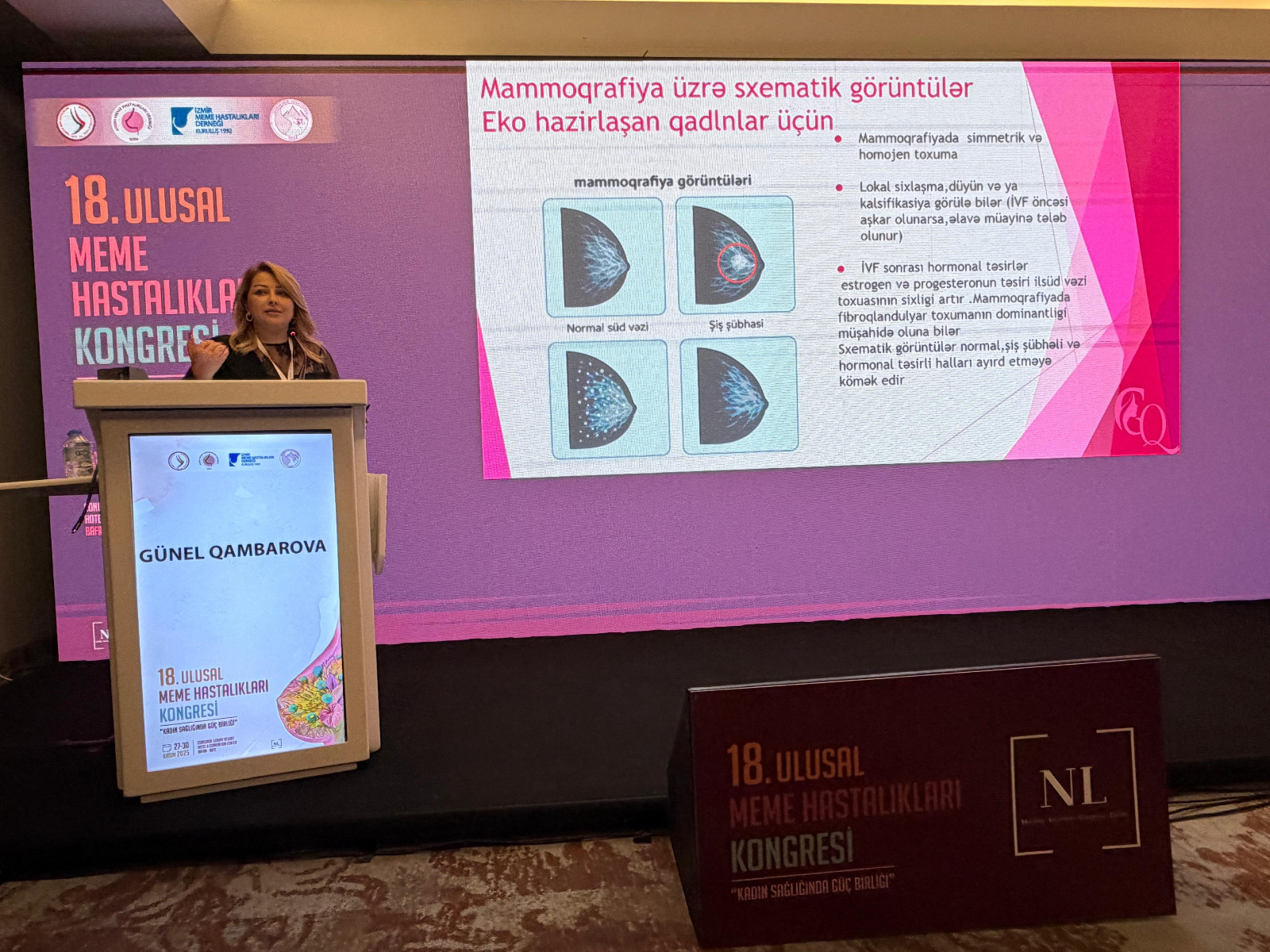 “Azərbaycanda, eləcə də dünyada aktual olan mövzulardan biri-süni mayalanmaya qədər və süni mayalanmadan sonra “3 D tomosintez” mammoqrafiyasında rast gəlinən süd vəzi xərçəngi və biopsiyası haqqında çıxış etdim. Mövzu böyük marağa səbəb oldu, çox sual yönəldildi. Xüsusən də, məruzəmin real xəstə nümunələri üzərində qurulması tədbir iştirakçılarının diqqətini cəlb etdi. Hətta konfrans həmsədrləri bu mövzunun daha çox işıqlandırmağımızı tövsiyə etdilər. Çünki dünya ədəbiyyatında süni mayalanmanın xərçənglə birbaşa əlaqəsi yazılmasa da təcrübədə əksini gördüyümüz olur. Yeni və üzərində ciddi araşdırmalar aparılan mövzudur. Düşünürəm ki, yaxın gələcəkdə ədəbiyyatlara düşəcək mühüm nəticələr əldə olunacaq”.