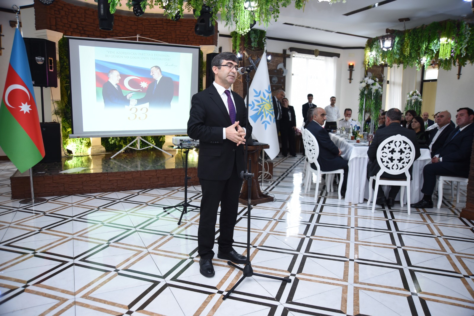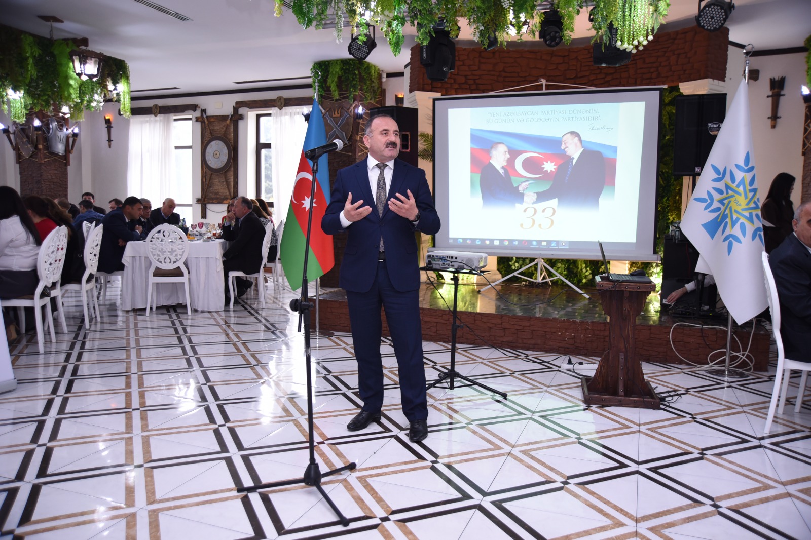 Tədbiri giriş sözü ilə açan YAP Xətai rayon təşkilatının sədri Ramil Mirzəyev Yeni Azərbaycan Partiyasının yaranmasından bu günədək keçdiyi inkişaf yolu barədə geniş nitq söylədi. O, ümummilli lider Heyər Əliyevin siyasi strategiyası və Prezident cənab İlham Əliyevin uzaqgörən siyasəti nəticəsində bu gün ölkəmizin çoxsaylı uğurlar qazanmasında Yeni Azərbaycan Partiyasının əvəzsiz rolu olduğunu söylədi. Ramil Mirzəyev qeyd etdi ki, dövlət başçısı cənab İlham Əliyevin rəhbərliyi ilə həyata keçirilən siyasi kursun davam etdirilməsi ölkəmizi daha da parlaq gələcəyə aparacaq və dünyadakı nüfuzunu daha da möhkəmləndirəcək.