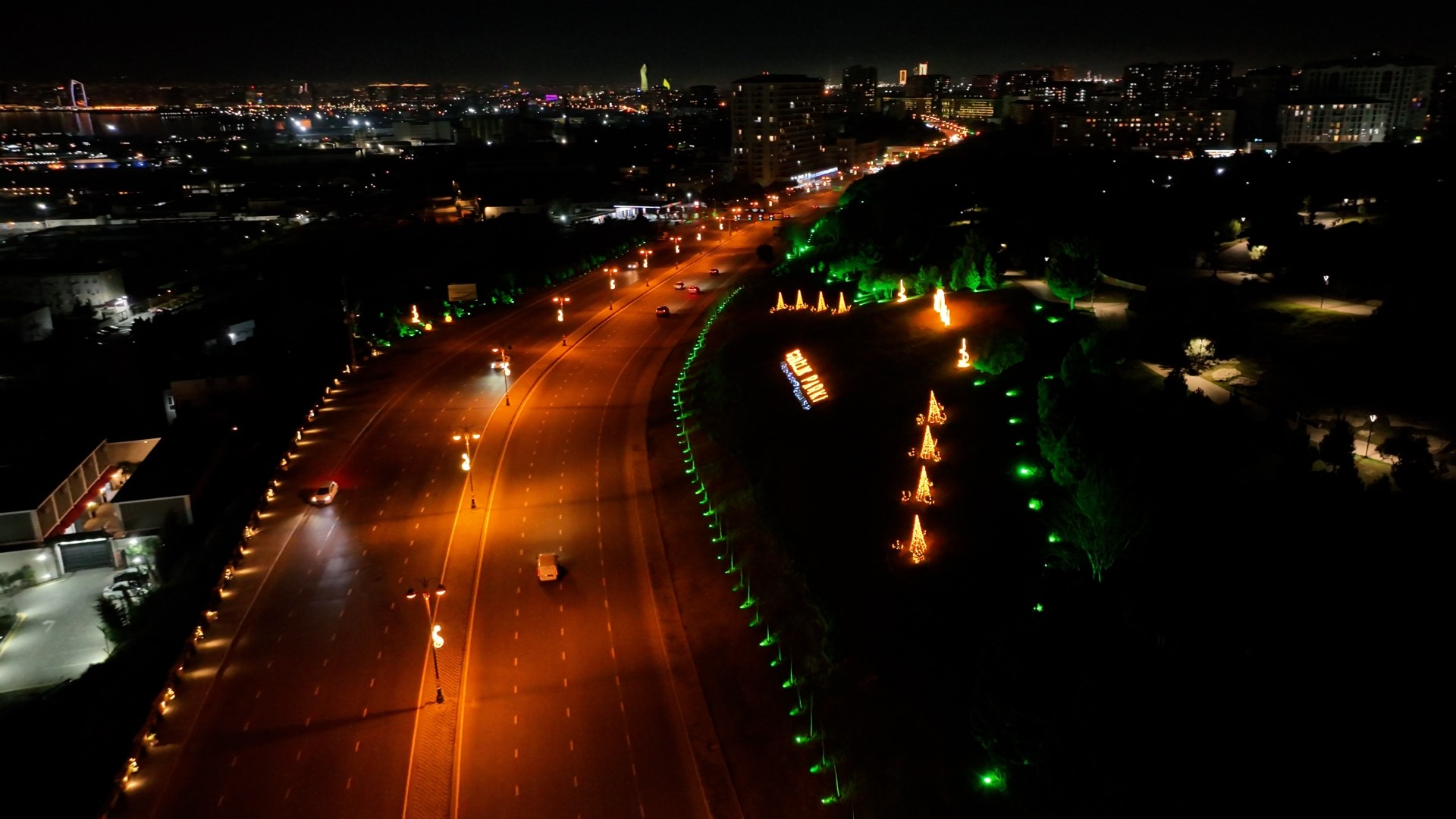 “Qafqazinfo” xəbər verir ki, Heydər Əliyev adına mədəniyyət və istirahət parkında, 8 Noyabr prospektində, Yusif Səfərov, M. Hadi, Zığ yolu və digər küçələrdə yol boyunca təbii ağaclar işıqlandırılıb, yolkalar və müxtəlif dekorativ elementlər quraşdırılıb. Bu tərtibat işləri ətraf mühitə xüsusi bayram ab-havası qatır.