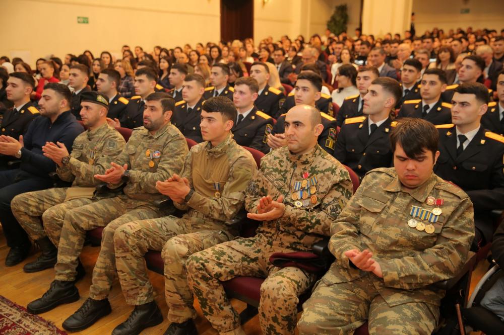 Daha sonra çıxış edən gənclər Bakı Ali Neft Məktəbinin tələbəsi Dautov Elnur və 125№li tam orta məktəbin şagirdi, “Heydər Əliyev və Azərbaycan tarixi” adlı referat müsabiqəsinin iştirakçısı İslamzadə Riyad müxtəlif sahələrdə uğur qazanan, özünü təsdiqləyən Azərbaycan gəncləri üçün ən həlledici sınaqlardan biri də sentyabrın 27-də başlayan və noyabrın 10-dək davam edən Vətən müharibəsi olduğunu bildirdilər. Rəşadətli Azərbaycan Ordusunun sıralarında Vətən uğrunda mətanətlə ön və arxa cəbhədə vuruşan qəhrəman gənclərimiz adlarını xalqımızın ən yeni tarixinə qızıl hərflərlə yazdılar. Məhz onların rəşadəti sayəsində əldə olunan bu Şanlı Zəfərlə Azərbaycanın ərazi bütövlüyü bərpa edildi, xalqımız otuz illik həsrətdən sonra tarixi torpaqlarımıza qovuşdu.
