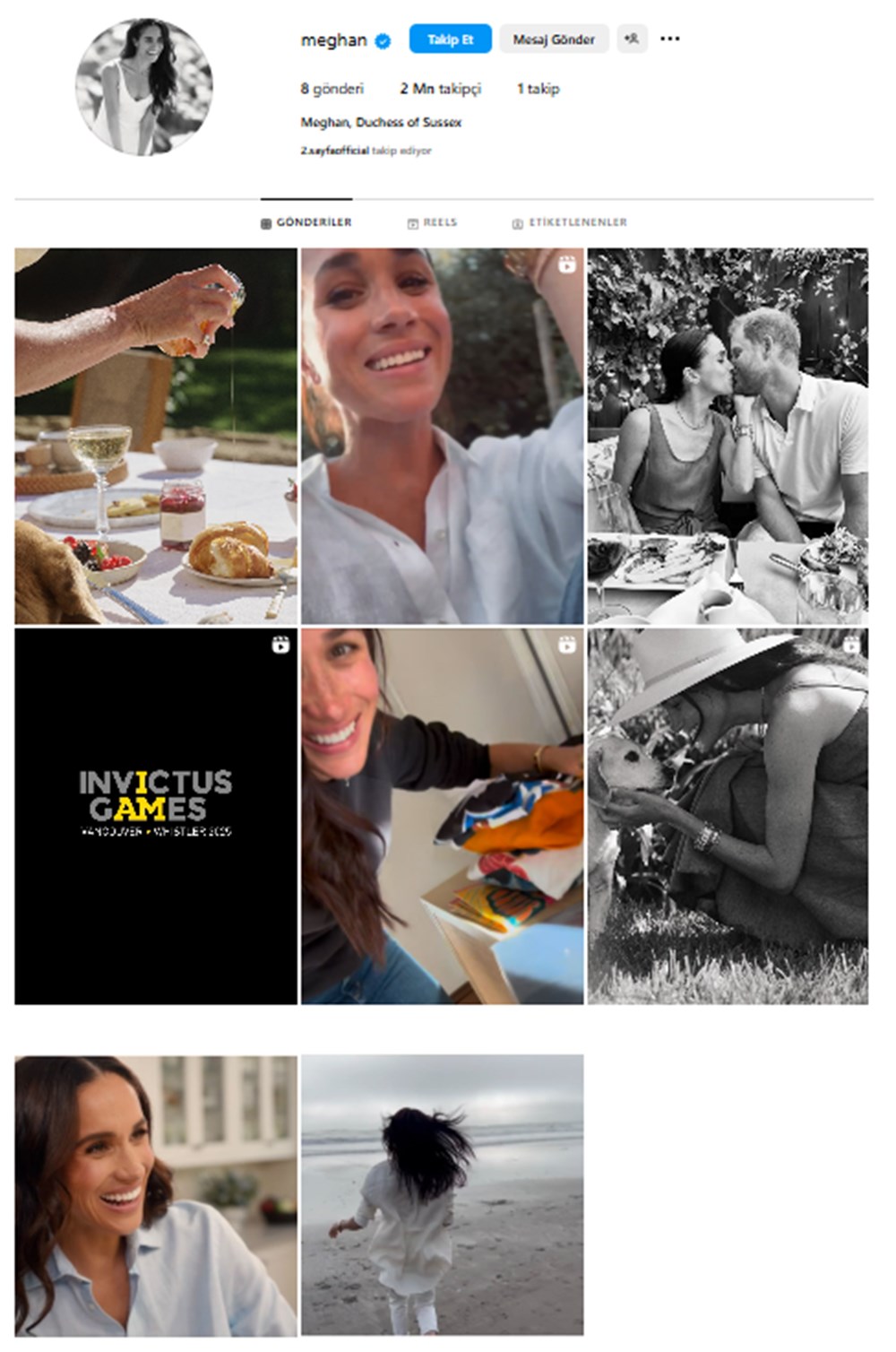 Kral həyatı ilə vidalaşan və ABŞ-də yeni səhifə açan Şahzadə Harri və Meqan Markl hər zaman gündəmdədir. Uzun bir fasilədən sonra sosial mediaya qayıdan Sussex hersoginyası yalnız bir sosial hesabı izləyir.