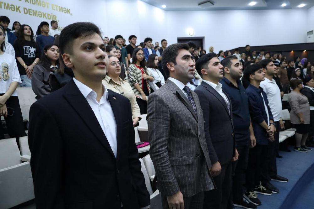 Əvvəlcə Dövlət Himni səsləndirilib, ərazi bütövlüyümüzün qorunması, torpaqlarımızın azad olunması uğrunda həlak olan şəhidlərimizin əziz xatirəsi bir dəqiqəlik sükutla yad olunub.