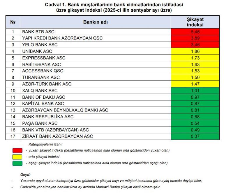Ən çox şikayət edilən banklar: UNİBANK , BANK BTB , Yelo Bank...