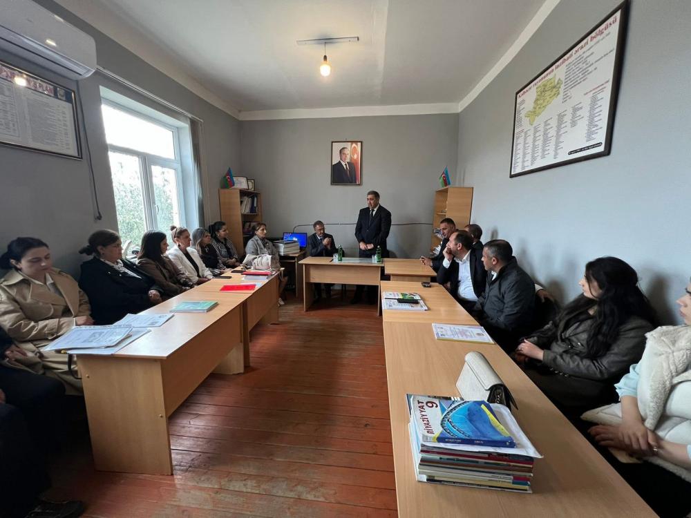 Ulu Öndər Heydər Əliyevin və şəhidlərimizin əziz xatirəsi bir dəqiqqəlik sükutla yad edildi. Tədbirdə Yeni Azərbaycan Partiyası Kəlbəcər rayon təşkilatının sədri Həbib Misirov Ümummilli Lider Heydər Əliyevin müasir müstəqil Azərbaycan dövlətinin qurulması və inkişafı sahəsindəki əvəzsiz xidmətlərindən danışıb. Qeyd edib ki, Ulu Öndərin siyasi irsi bu gün Prezident İlham Əliyevin rəhbərliyi ilə yeni mərhələdə uğurla həyata keçirilir. Sədr Həbib Misirov vurğulayıb ki, Ümummilli Lider Heydər Əliyevin ideyalarına əsaslanan Yeni Azərbaycan Partiyası dövlətçilik tariximizdə mühüm yer tutur. Bu ənənə bu gün Prezident İlham Əliyevin rəhbərliyi ilə uğurla davam etdirilir və partiya ölkəmizin dayanıqlı inkişafına töhfə verməkdədir. “Konstitusiya və Suverenlik İli”nin elan edilməsinin mühüm tarixi-siyasi əhəmiyyətindən danışıb. Bildirib ki, cari il Azərbaycan Respublikasının Konstitusiyasının qəbulunun 30, Vətən müharibəsində qazanılan Zəfərin isə 5 illiyi ilə yadda qalır. Məktəbin direktoru, Ərazi Partiya Təşkilatının sədri Nazim Orucov, müəllimlərdən Mehrəngiz Məmmədova, şəhid qardaşı Şəmistan Musayev, Nilufər Quliyeva, Leyla Ələsgərli çıxış edərək əsasını ulu öndər Heydər Əliyevin qoyduğu və bu gün Prezident İlham Əliyev tərəfindən uğurla davam etdirilən siyasət nəticəsində Azərbaycanın ötən illər ərzində böyük inkişaf yolu keçdiyini bildiriblər. Çıxış edənlər Vətən müharibəsində əldə edilən möhtəşəm Zəfərin, xalqımızın birliyinin, dövlətimizin qüdrətinin və Prezident, Müzəffər Ali Baş Komandan İlham Əliyevin qətiyyətli rəhbərliyinin parlaq təntənəsi olduğunu vurğulayıblar.