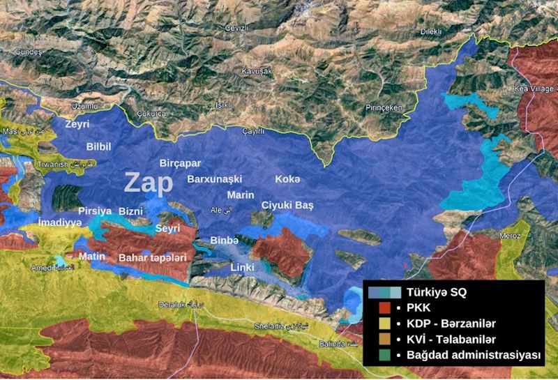 Türkiyə Silahlı Qüvvələrinin Zap düşərgəsində yerləşdiyi bəzi strateji nöqtələrə göz gəzdirək: Zeyri (1716 m), Bilbil (1066 m), Pirsiya (2321 m), Bizni (1868 m), Matin (1716 m), İmadiyyə (2025 m), Seyri (1527 m), Birçapar (1491 m), Marin (2049 m), Barxunaşki (1944 m), Binbə (1637 m), Linki (2252 m), Ciyuki Baş (2153 m) və Kokə (2287 m) dağları, həmçinin Bahar təpələri...