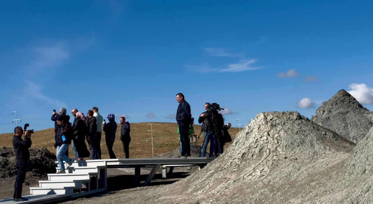 Küləkli hava, uzaqdan görünən boz təpələr və torpağın səthində vaxtaşırı püskürən palçıq vulkanları...Media nümayəndələrinin budəfəki ünvanı Qobustanın ən fərqli məkanlarından biri olan Qoruqları İdarəetmə Mərkəzinin tabeliyindəki Palçıq Vulkanları Turizm Kompleksi idi. Oktyabrın 31-də Dövlət Turizm Agentliyinin təşkilatçılığı ilə keçirilən səfər həm təbiətin bu nadir hadisəsini yaxından görmək, həm də burada yaradılan yeni turizm imkanları ilə tanış olmaq məqsədi daşıyırdı.