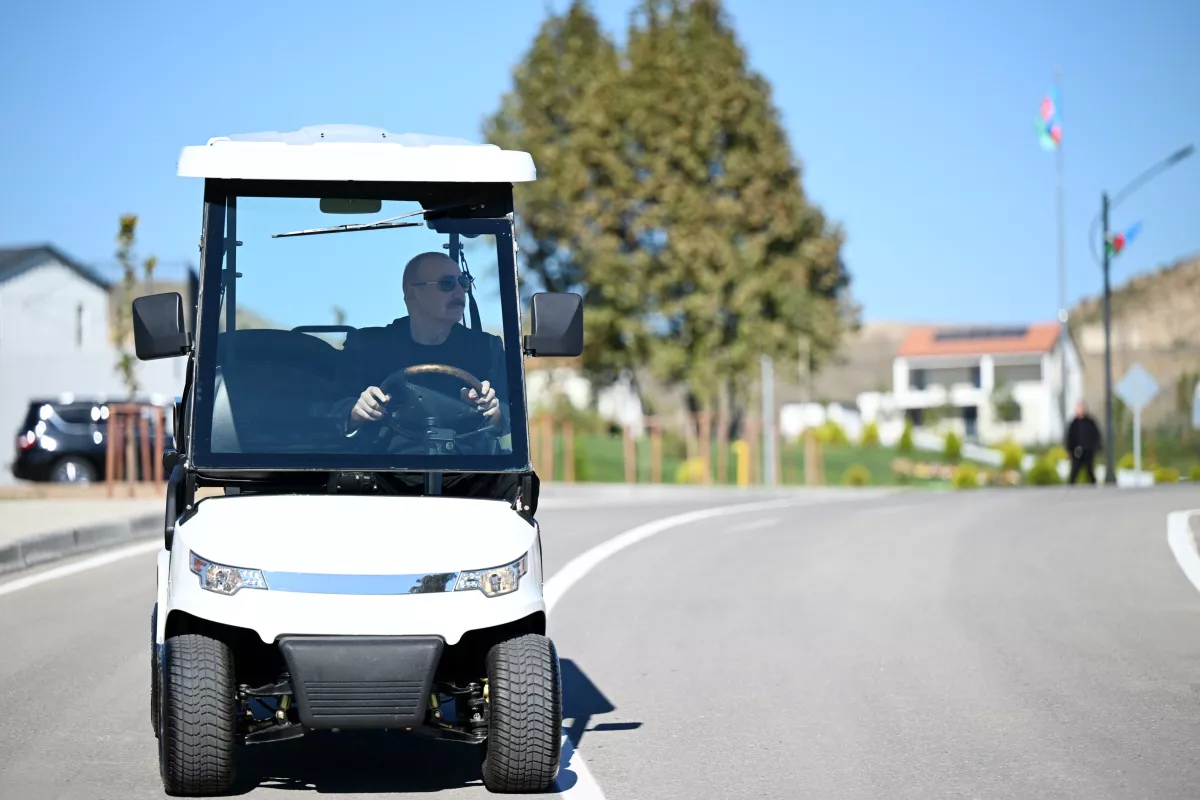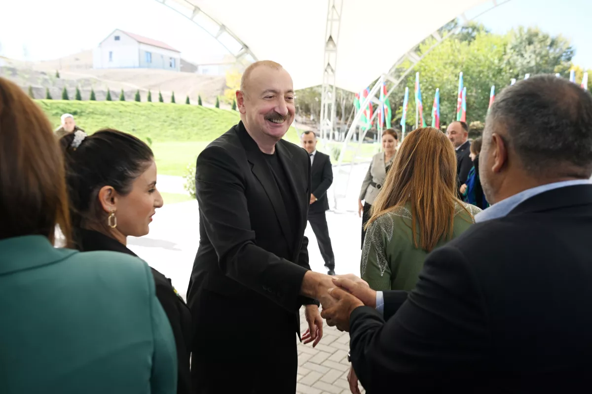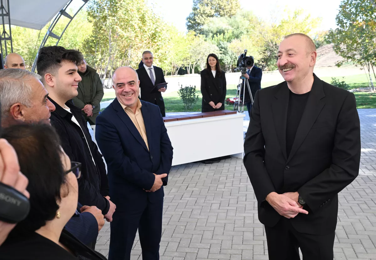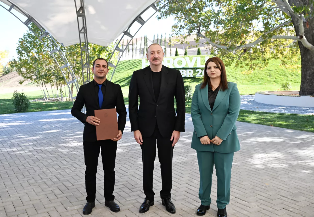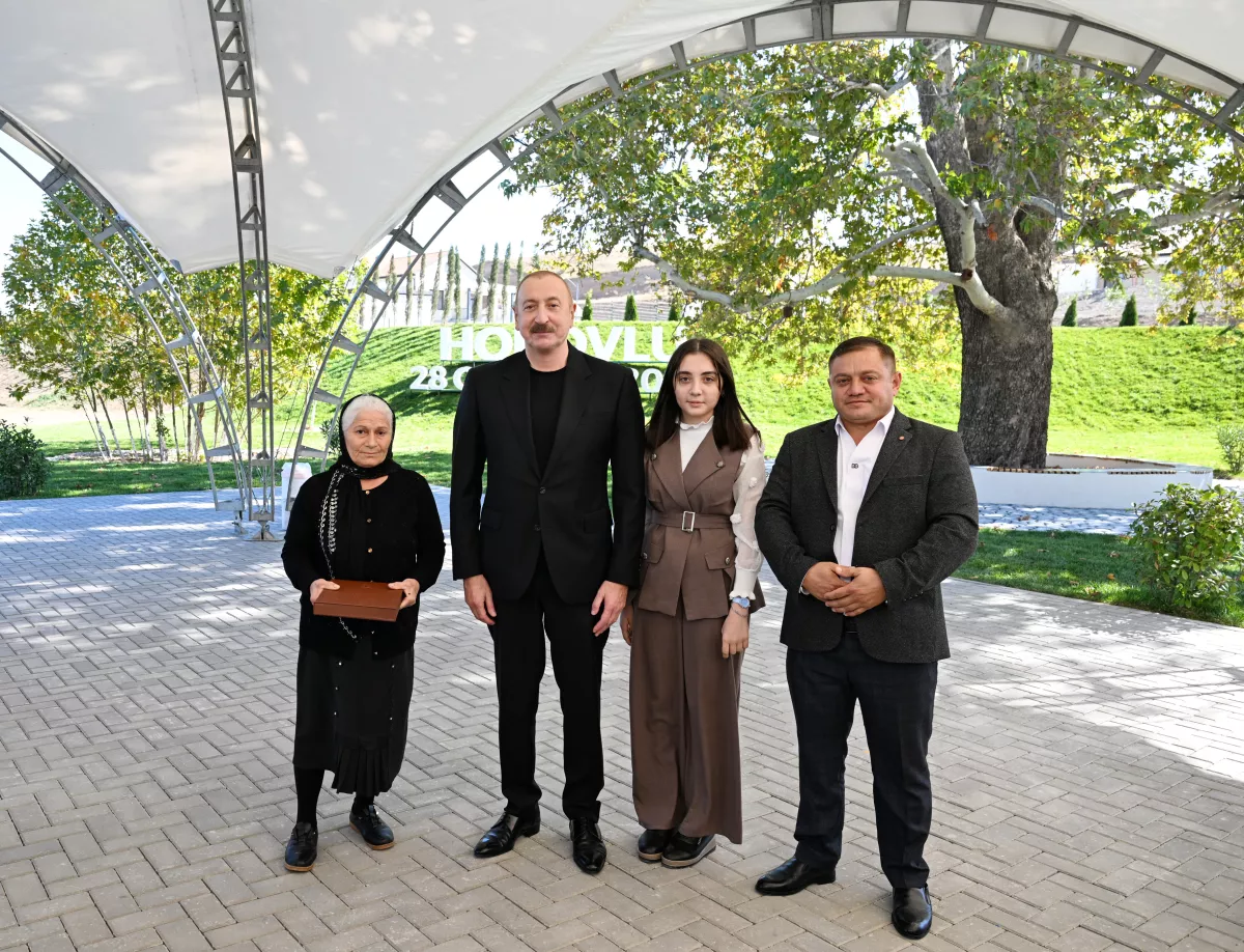 Ильхам Алиев вручил переехавшим в село жителям ключи от квартир.