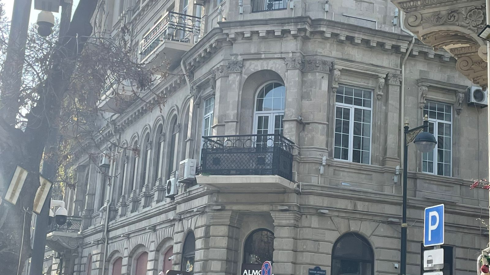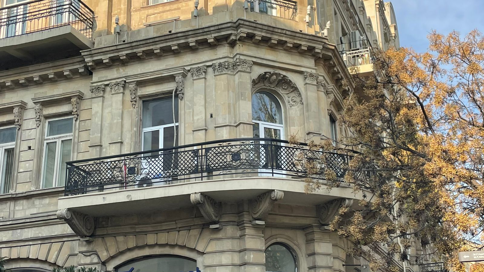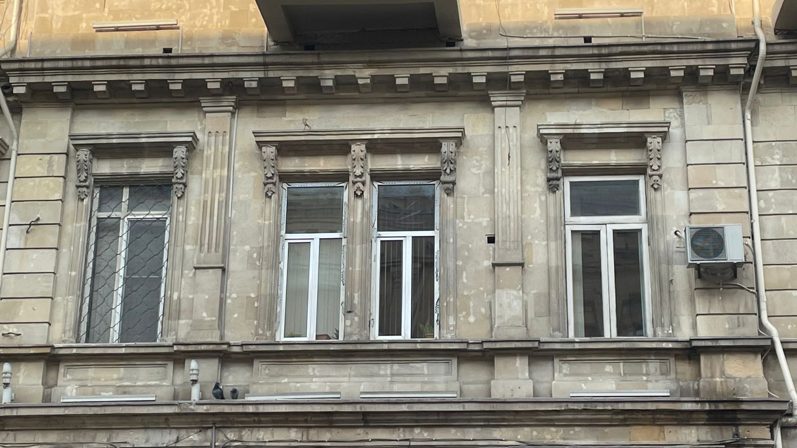 Первые два этажа здания, относящиеся к дореволюционному периоду, когда Баку переживал нефтяной бум и активно застраивался в европейских стилях, отличаются особой выразительностью. Первый этаж выделяется рустованными пилястрами и арочными проёмами, предназначенными для коммерческих функций, а массивные порталы с орнаментальными карнизами и лепниной в виде растительных мотивов придают фасаду монументальность и подчёркивают его связь с уличным пространством. Второй этаж сохраняет пластичность архитектурного решения, акцентируя внимание на балконах, поддерживаемых кронштейнами и ритмичных оконных нишах с изящной проработкой карнизов и фризов, где классические ордерные мотивы гармонично сочетаются с элементами модерна.