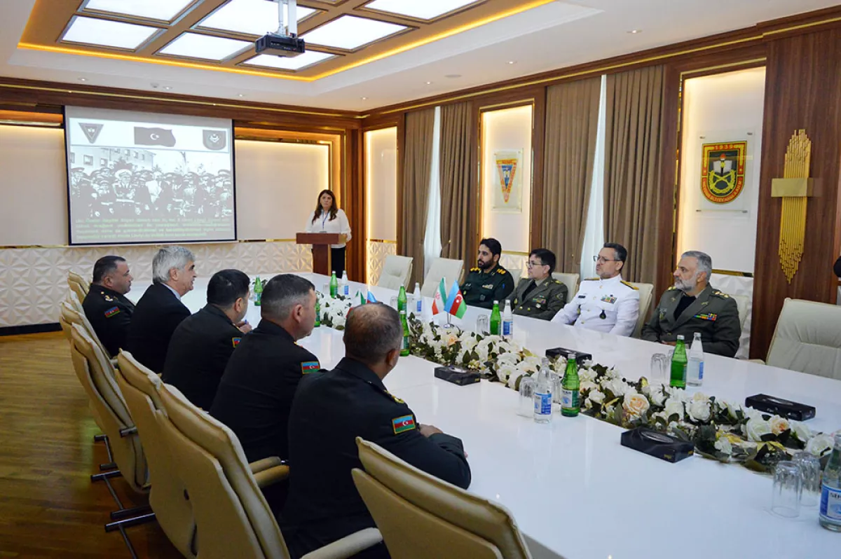 Затем иранская делегация посетила Институт военного управления. Ректор института полковник Эльнур Алескерли подробно рассказал гостям о работе учебного заведения.