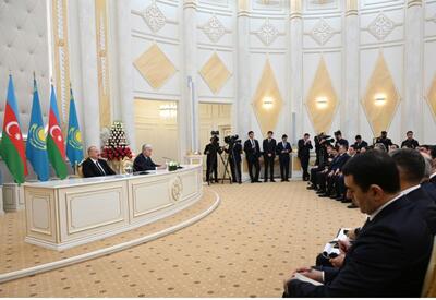 Что касается двусторонних экономических отношений, то с начала года товарооборот вырос в четыре раза по сравнению с восемью месяцами прошлого года. Это прекрасный результат. Казахстан и Азербайджан намерены в ближайшей перспективе довести двусторонний товарооборот до 1 миллиарда долларов. Стороны подумывают о создании совместных предприятий. Есть планы по сотрудничеству в области судостроения, инфраструктуры, сельского хозяйства, энергетики, цифровизации, идет работа над дорожной картой развития сотрудничества в промышленной сфере. Рассматриваются предложения по совместному финансированию через механизм азербайджано-казахстанского инвестиционного фонда. Также, как всем известно, Казахстан поддерживает Азербайджан в восстановлении освобожденных территорий. Уже сотня юных жителей города Физули посещает сегодня Центр детского творчества имени Курмангазы, построенный в дар физулинцам Казахстаном.