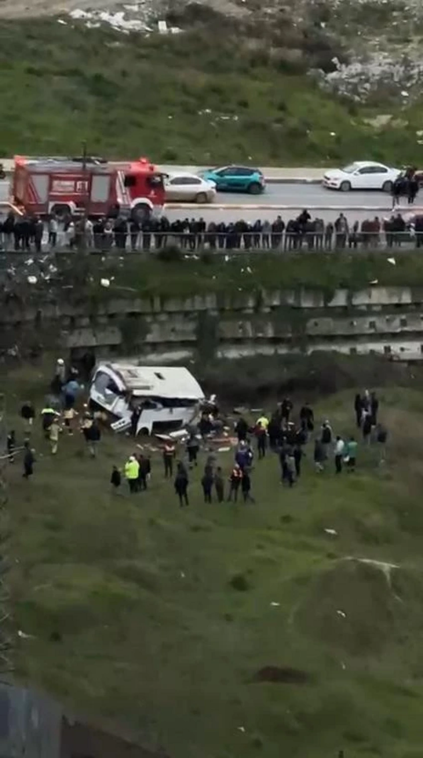 В районе Эсеньюрт города Стамбул микроавтобус, перевозивший рабочих, съехал с дороги и перевернулся.