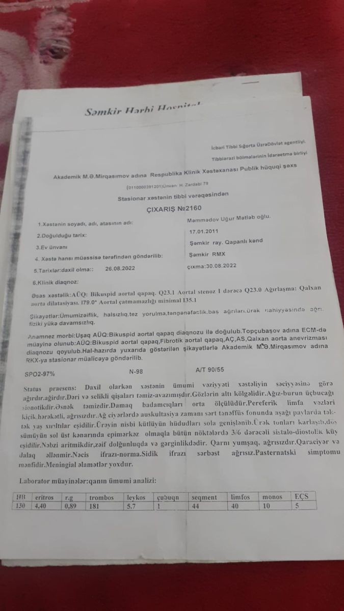 В редакцию 1news.az обратилась Тарлан Мамедова - мать 13-летнего Угура Мамедова, который с раннего детства борется с тяжелым врожденным пороком сердца.