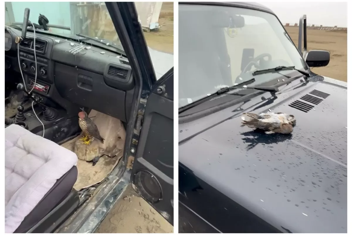 Во время осмотра автомобиля марки Niva, принадлежащего нарушителям, сотрудники службы обнаружили три незаконно пойманные птицы: сокола, одного голубя и три ловушки для птиц.
