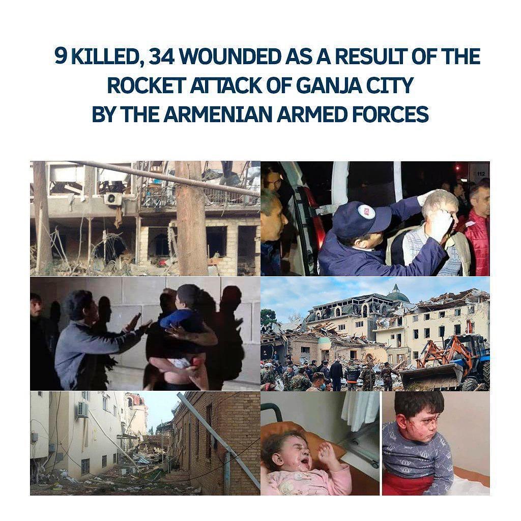 11 октября 2020 года Первый вице-президент Мехрибан Алиева поделилась публикациейв связи с обстрелом Гянджи.