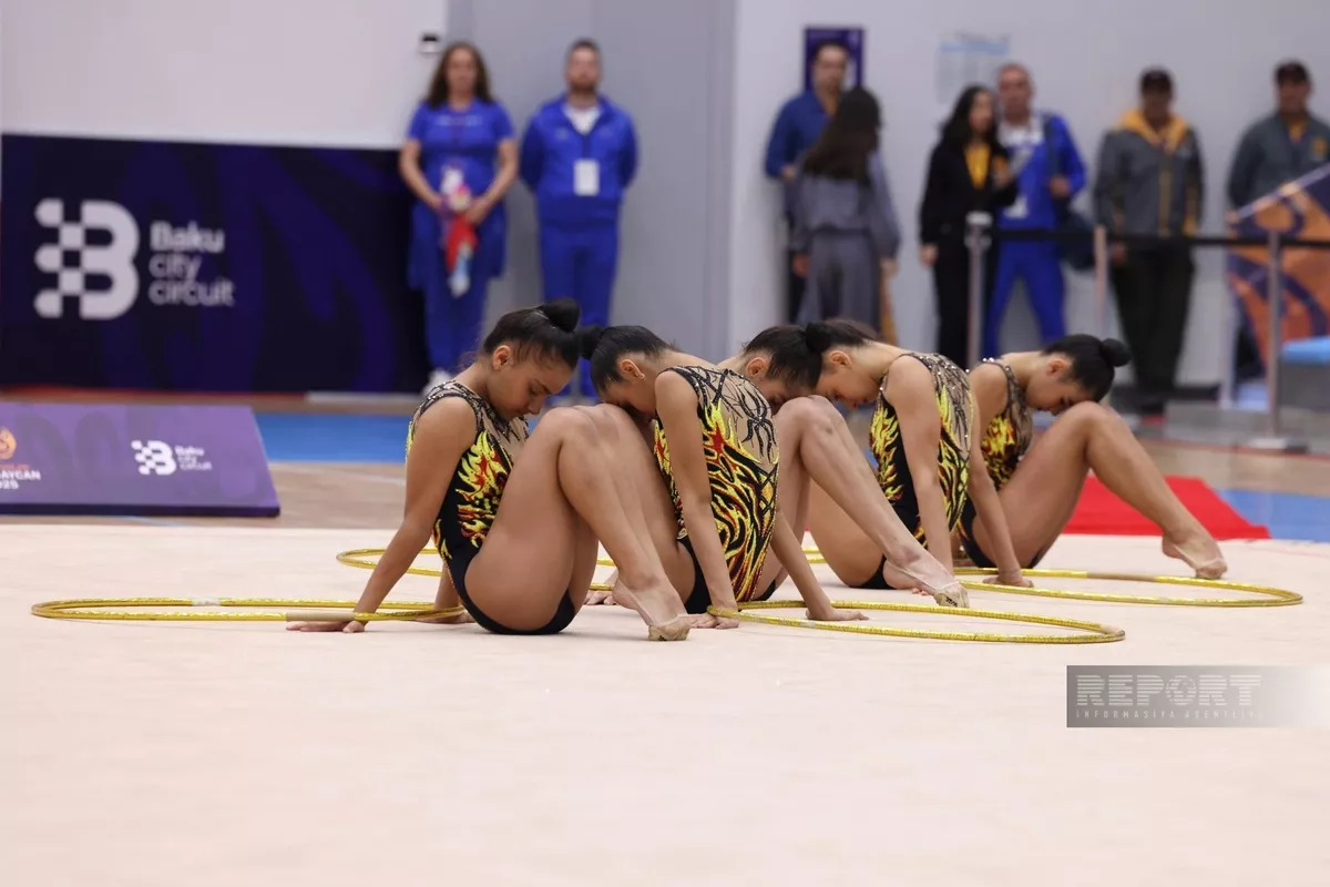Команда Азербайджана по художественной гимнастике в групповых упражнениях заняла третье место в упражнениях с обручем на III Играх СНГ.