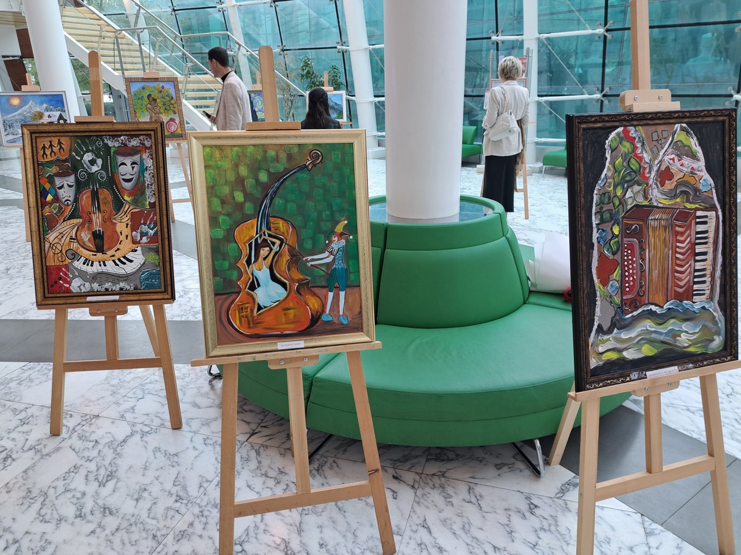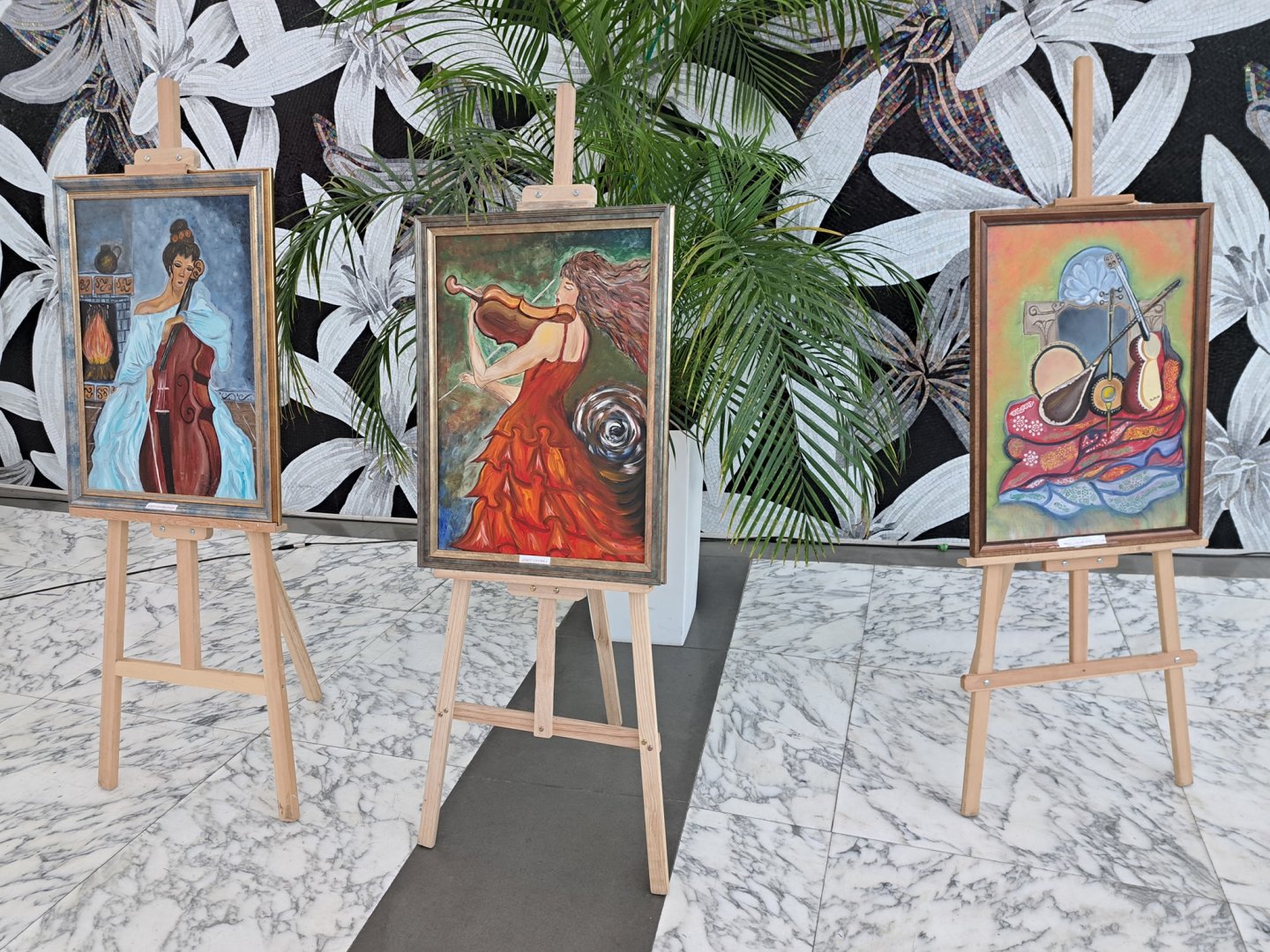 В экспозиции были представлены живописные полотна Ханым Пашазаде, отражающие её эмоциональное восприятие мира, а также прозвучали поэтические строки и авторские композиции, исполненные самой артисткой.