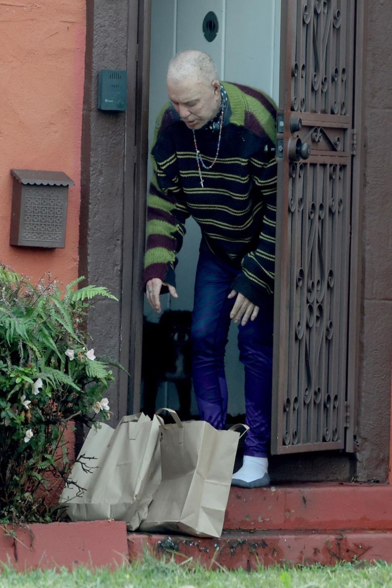 На фотографиях, опубликованных Page Six, 73-летний артист выходит из своего дома, чтобы забрать пакеты с дрставленными продуктами.