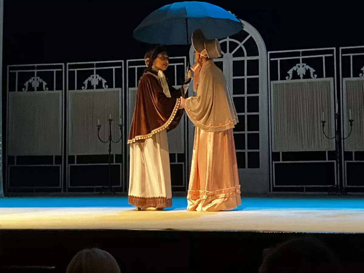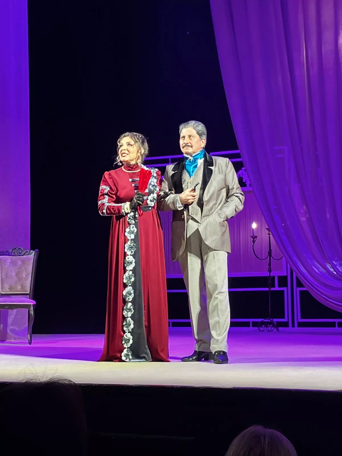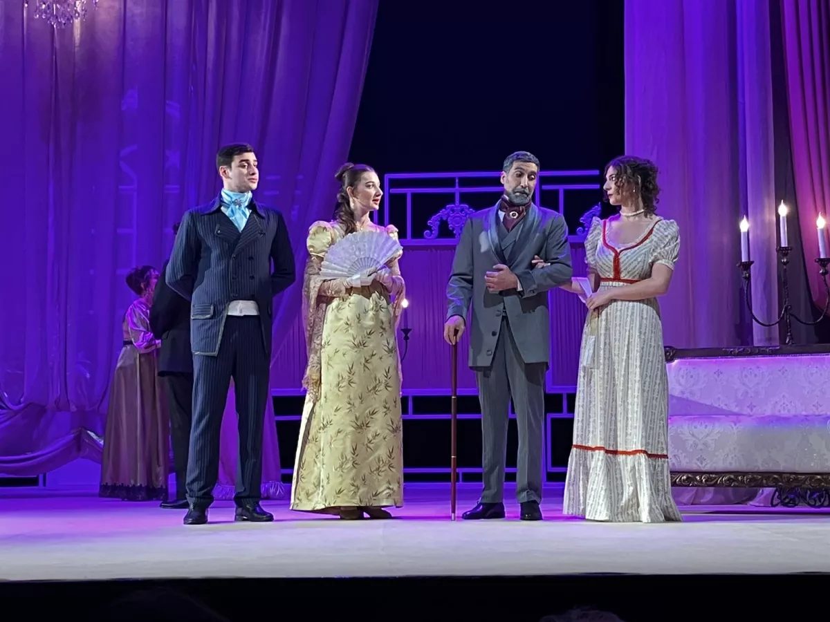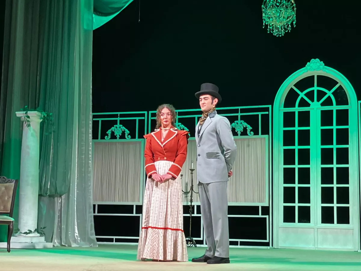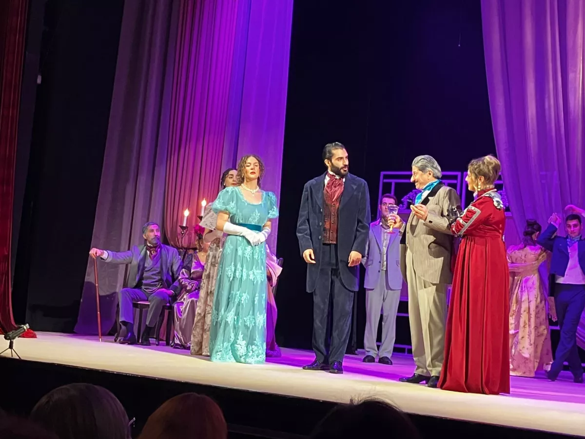 Ну и наконец — актеры. Вернее, актерская игра. Этот вечер можно назвать бенефисом Инны Имрановой (Анна Тейлор), персонаж которой напрочь затмил игру главных героев — Диляры Назаровой (Эмма Вудхаус) и Рашада Алиярова (Джордж Найтли). Последний был очень похож на народного артиста Фахраддина Манафова в глубокой молодости, но этим все сходство и ограничилось. Было видно, что Рашад серьезно готовился к роли, но это была скорее зубрежка, чем игра. Да, я понимаю, что холодная английская любовь резко отличается от горячей кавказской, но даже английские чувства можно сыграть с большей энергетикой, а не заученными движениями.