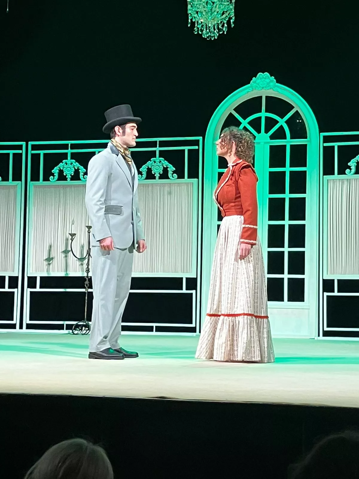Мы уже привыкли, что роли меняются, но Марина Литвиненко остается все такой же — с узнаваемым, но все-таки однообразным и уже изрядно поднадоевшим стилем игры. Вот и сейчас ее персонаж (мать мисс Бейтс) практически ничем не отличался от десятка других ее героинь, сыгранных на сцене Русдрамы. Зато ее сценическая дочь — Милана Соколенко (мисс Бейтс) — умеет быть разной: и когда была Мардахановой, и когда стала Соколенко. Вот и на этой премьере Милана зажигала как могла, но огонь от ее игры быстро угас на фоне всеобщего штиля энергетики остальных персонажей, задействованных в спектакле.