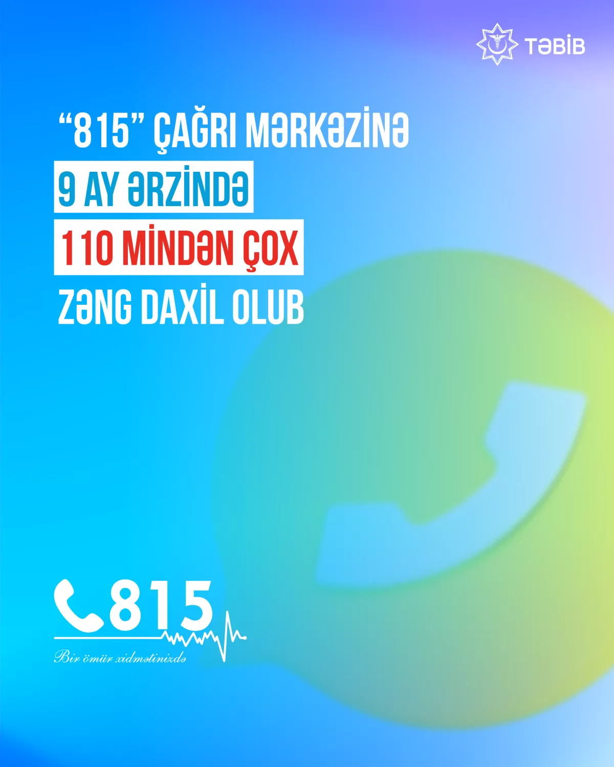 На «горячую линию» Объединения по управлению территориальными медицинскими структурами (TƏBİB) – по номеру 815 – в январе – сентябре 2025 года поступило 113 тысяч 610 звонков.