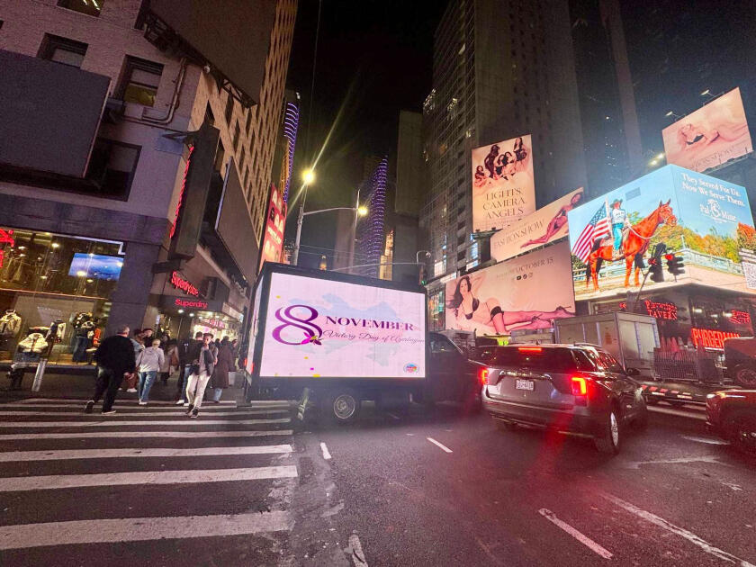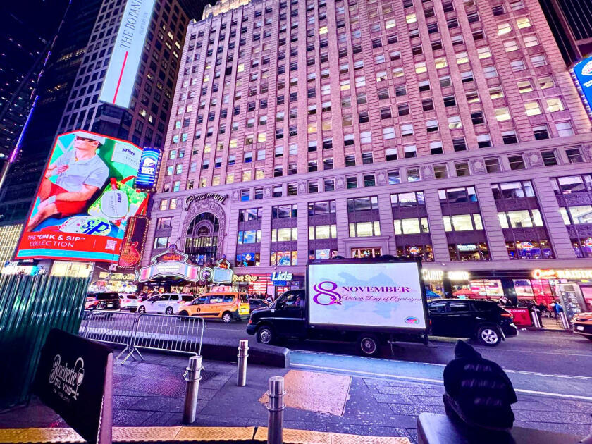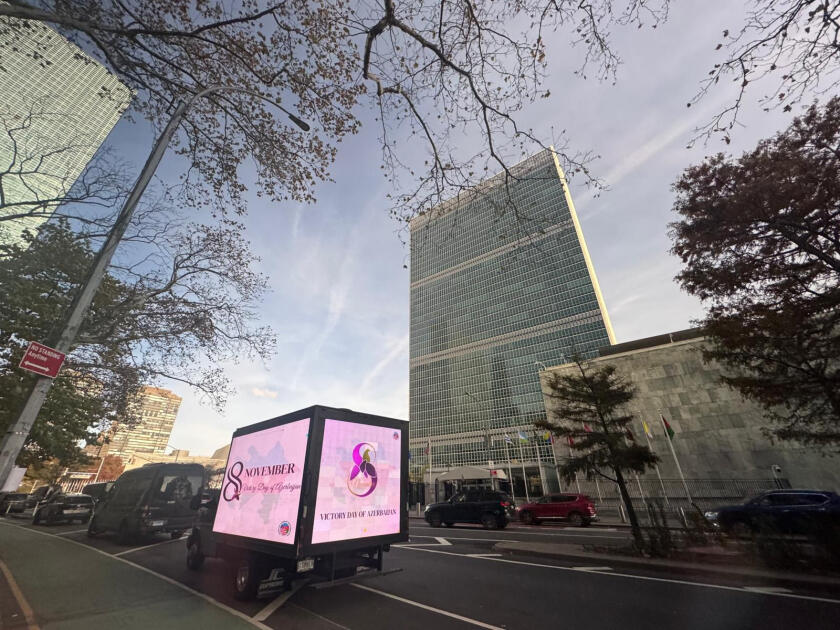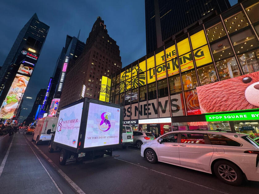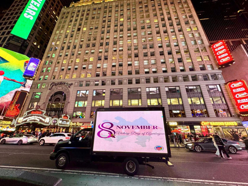 В рамках акции по улицам Нью-Йорка, включая Таймс-сквер, штаб-квартиру ООН, Брайант-парк и другие знаковые места, курсировал специально оформленный автомобиль, оснащённый LED-экраном. На экране транслировались надпись "8 ноября - День Победы Азербайджана!", карта Азербайджанской Республики, а также изображения символа памяти героев, павших во Второй Карабахской войне, - харыбюльбюля, жемчужины Карабаха.