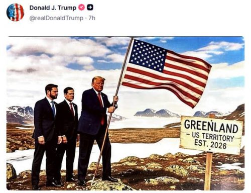 Еще одно изображение, опубликованное чуть позже, демонстрирует, как Трамп в сопровождении вице-президента Джей Ди Вэнса и госсекретаря Марко Рубио устанавливает американский флаг на Гренландии.