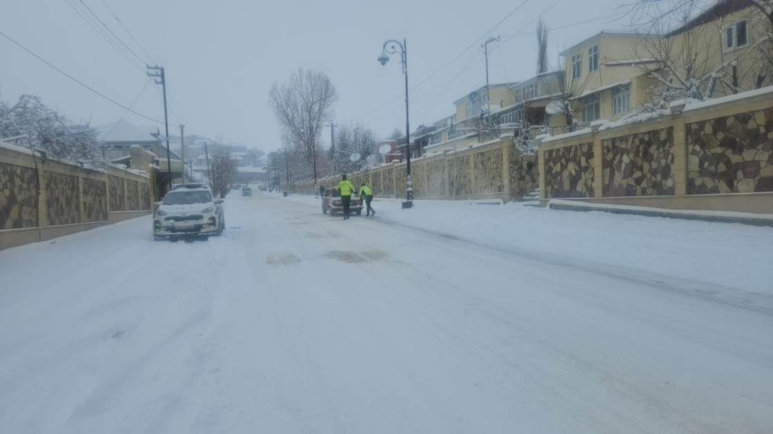 В ходе круглосуточного дежурства, организованного с ночных часов совместно с другими государственными структурами, проводится очистка дорог и дорожных знаков от снега и льда, а на участках с риском скольжения осуществляется посыпка песком и солью.