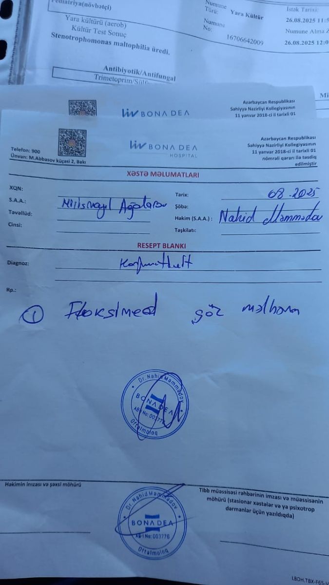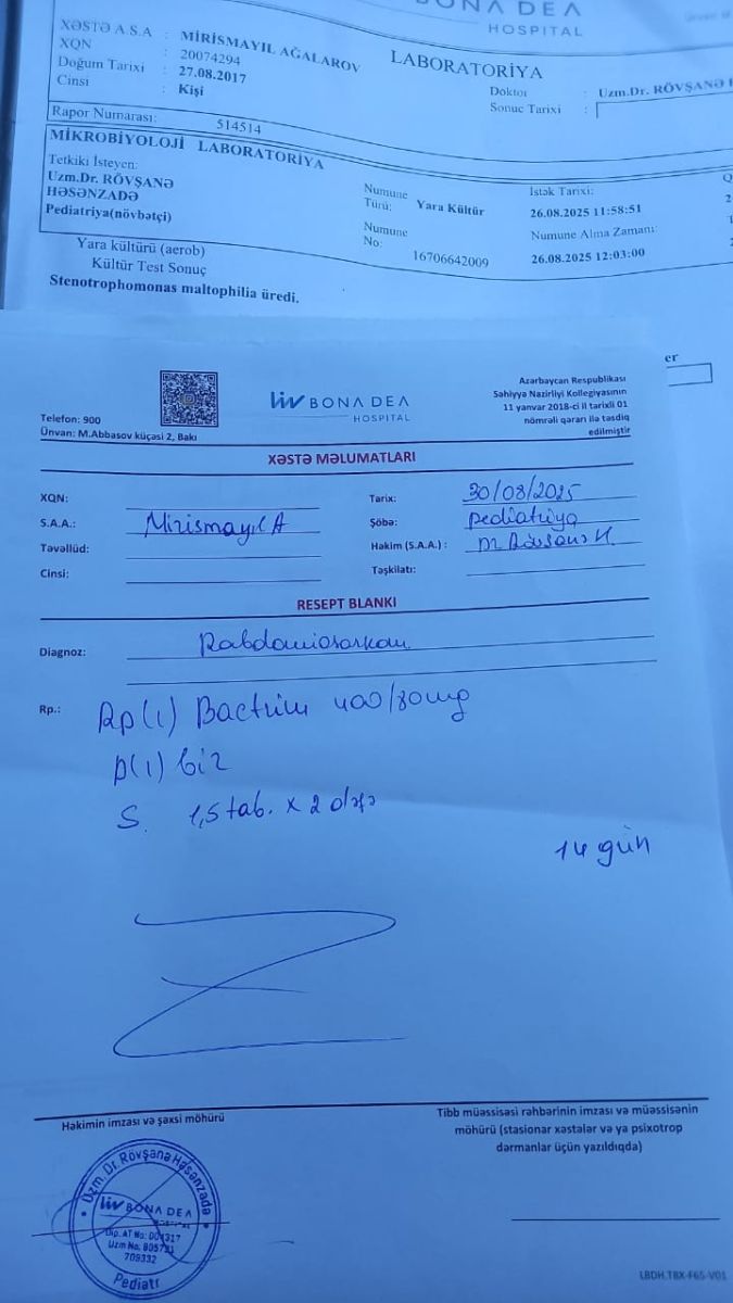 По его словам, испытания для ребенка не закончились: недавно в ампутированной глазной впадине были обнаружены грибковые образования, из-за чего Мирисмаилу назначено новое лечение.