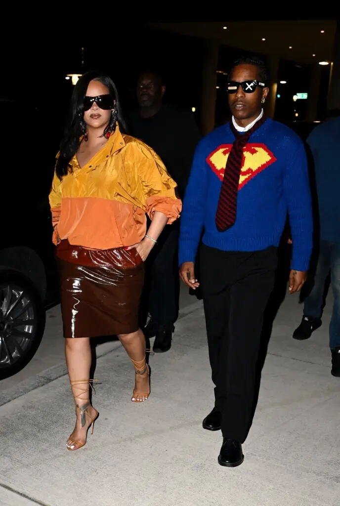 Рианна выбрала образ от Saint Laurent в стиле одного из главных персонажей "Скуби‑Ду", а A$AP Rocky - в синем свитере Chanel Супермена. Пара посетила ярмарку Art Basel в Майами.