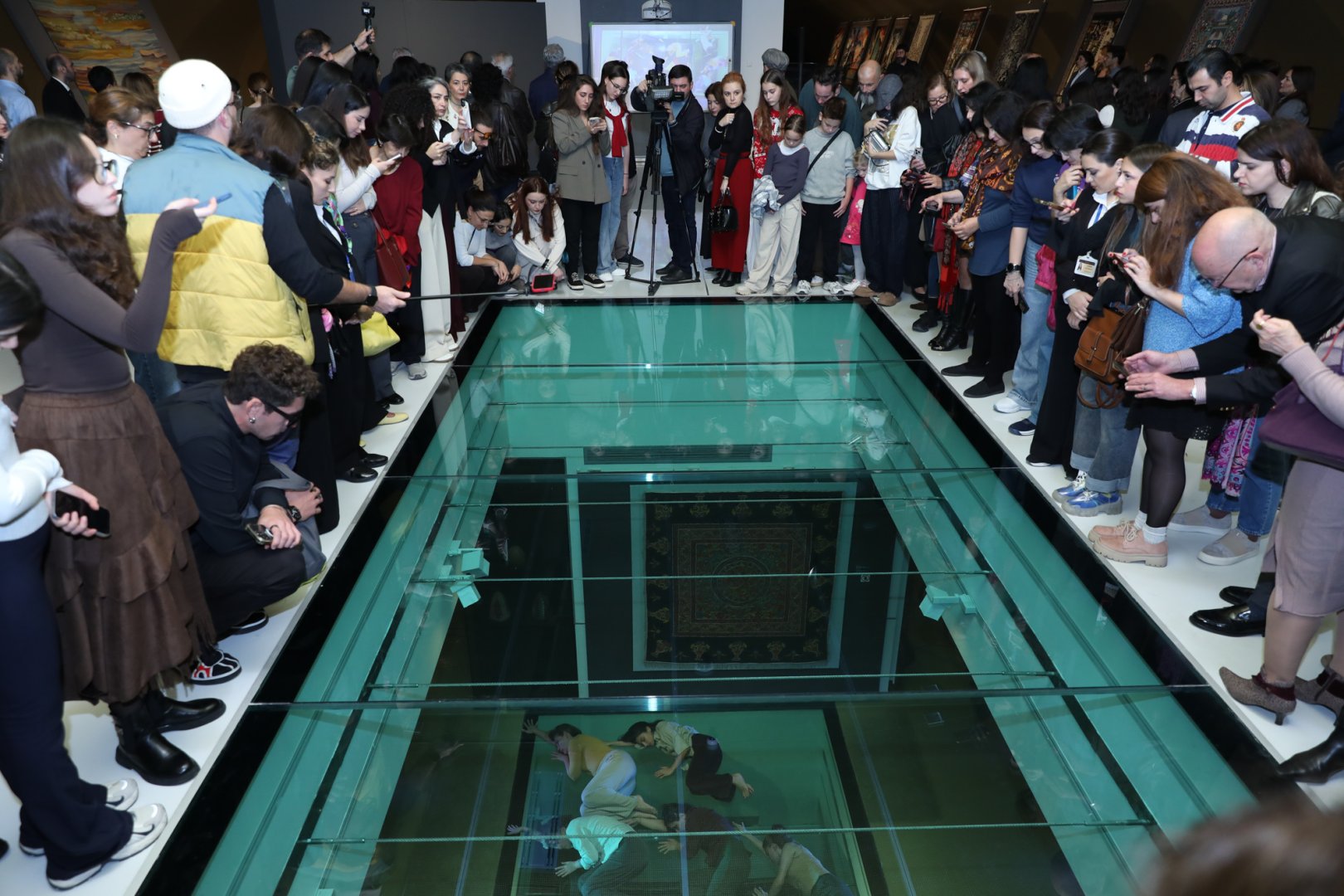 На мероприятии актёры "Театра O2" представили специально подготовленный спектакль, посвящённый презентации ковра. Автор сценария и режиссёр спектакля - Константин Солдатов, хореограф - Нигяр Ибрагимбейли.