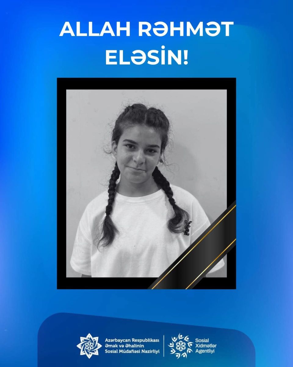 "Коллектив Агентства социальных услуг, находящегося в подчинении Министерства труда и социальной защиты населения, выражает глубокое сожаление в связи с трагической смертью 16-летней Нурджан Джафаровой, проживавшей в приюте Общества содействия женщинам «Чистый мир». Мы молимся за упокой её души и желаем сил родным и близким", - говорится в заявлении агентства в соцсети Facebook.