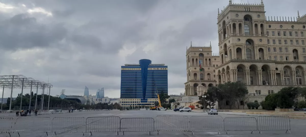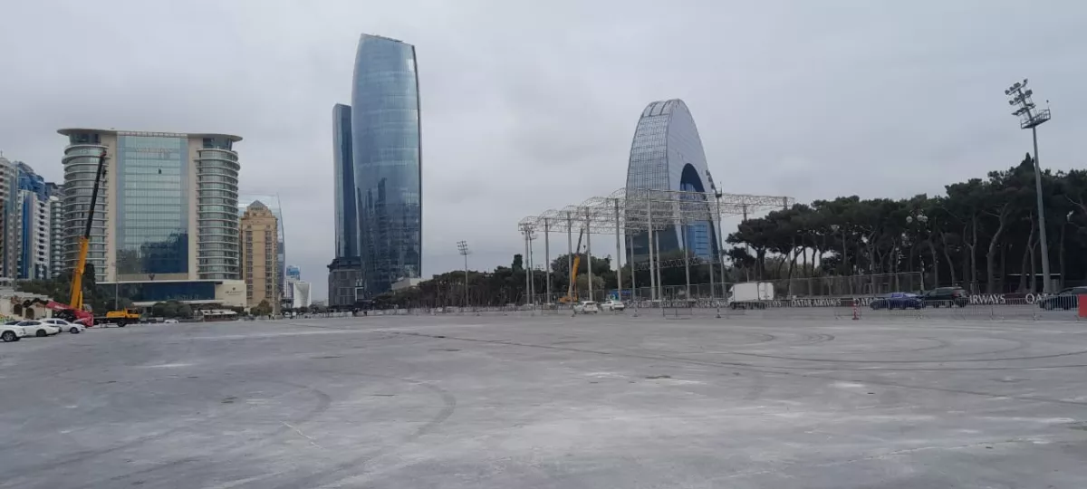 На данный момент рабочие демонтируют остатки сооружений, площадь Азадлыг фактически полностью свободна от металлических конструкций.