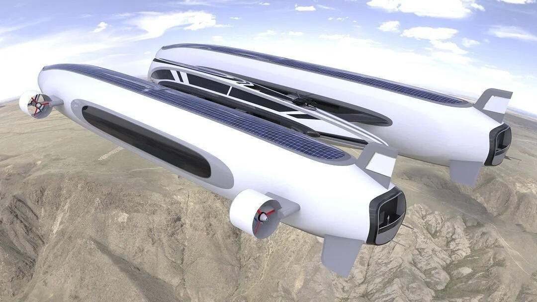 Корпус яхты состоит из сухого углеродного волокна. Судно может развивать скорость до 60 узлов (1 узел - 1,852 км/ч). У него есть четыре электрических пропеллера, работающих на солнечных батареях, и два заполненных гелием дирижабля - они необходимы для покорения небес.
