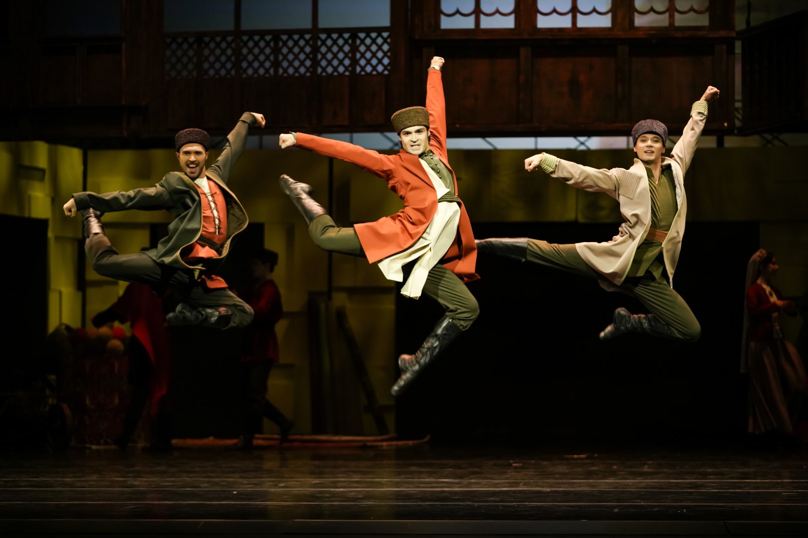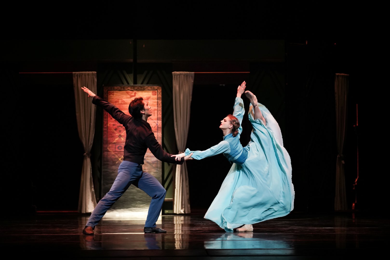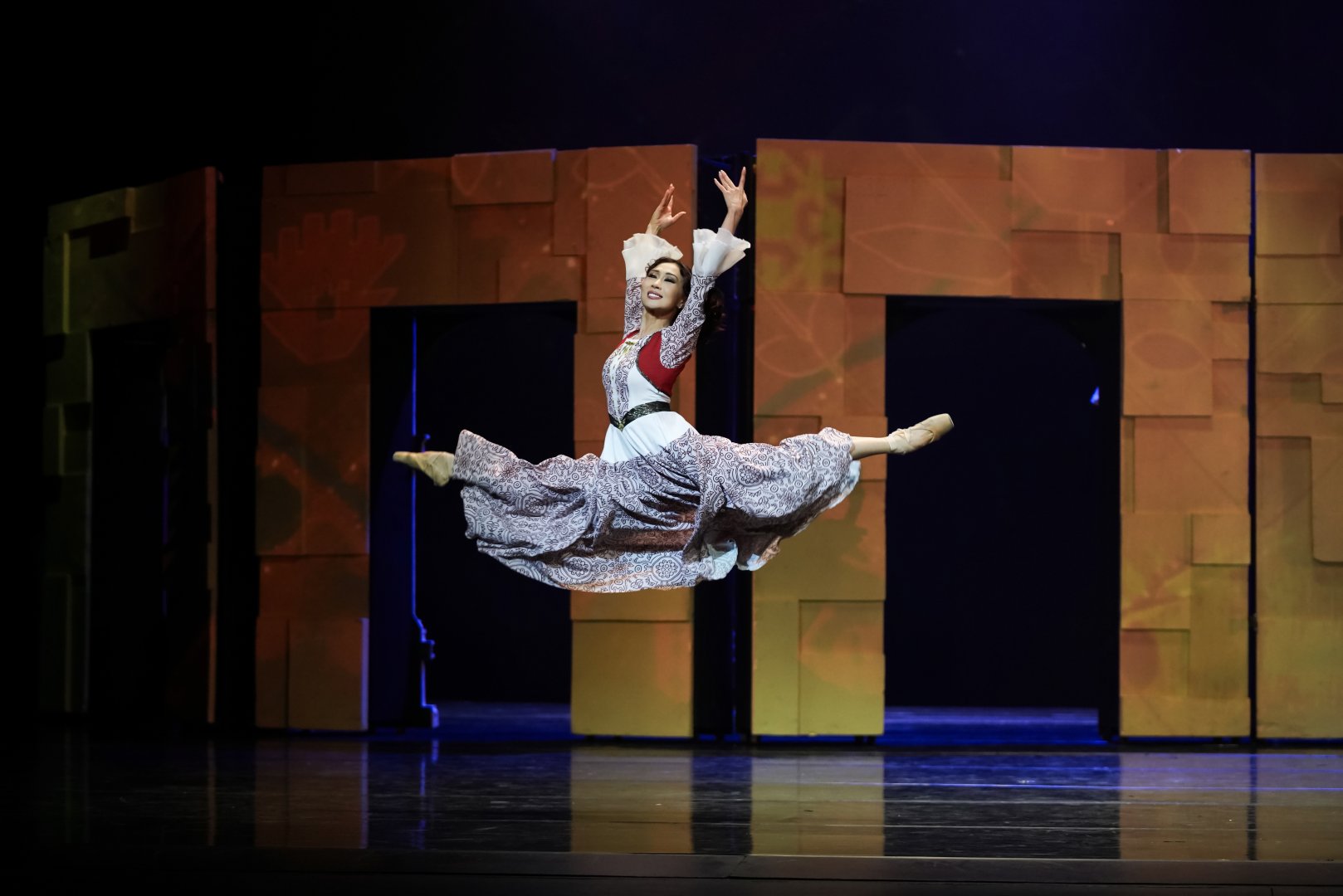 С первых минут зрители словно переносятся в другой мир - туда, где нитями искусства переплетаются Восток и Запад, когда мелодии, вдохновлённые национальными мотивами, создают ощущение древней легенды, ожившей на сцене. Каждый танцевальный эпизод напоминает узор на старинном ковре - многослойный, полный скрытых смыслов и тонких переходов. Более того, это великолепные режиссёрские решения, когда даже антураж сцены вместе с участниками передвигается по сцене, вливаясь в единство хореографического волшебства. Кроме того, действие происходит не только на сцене, но и над ней - на специально созданной платформе, что усиливает ощущение пространства и многомерности.
