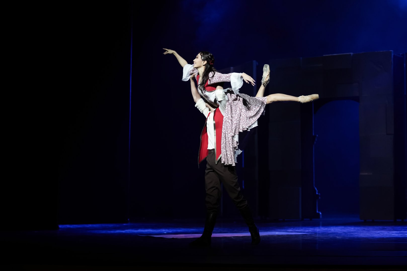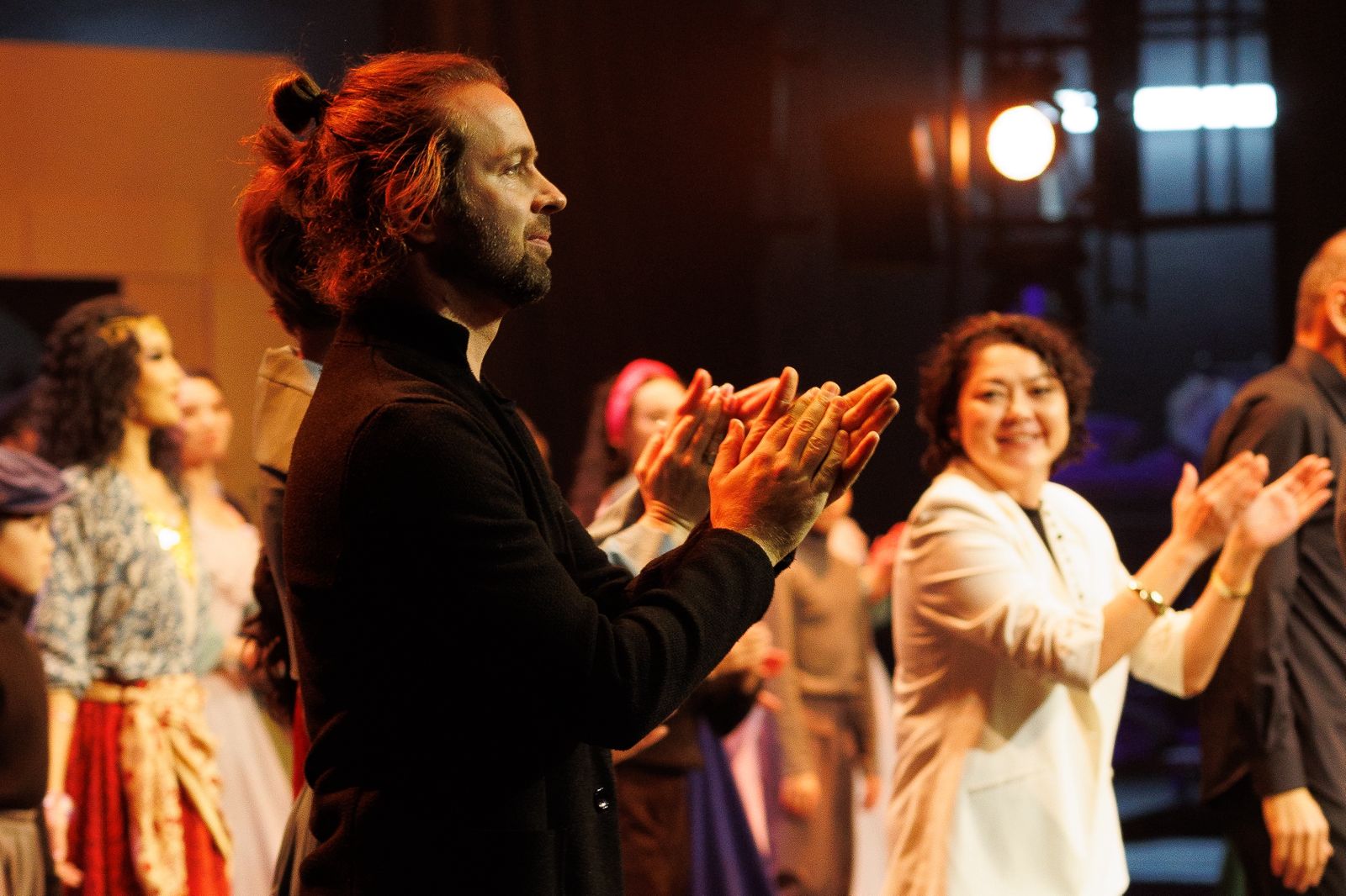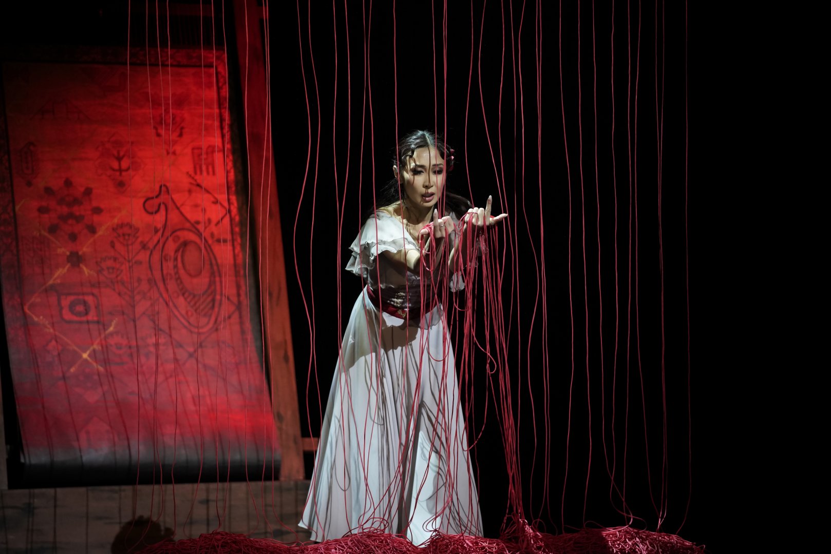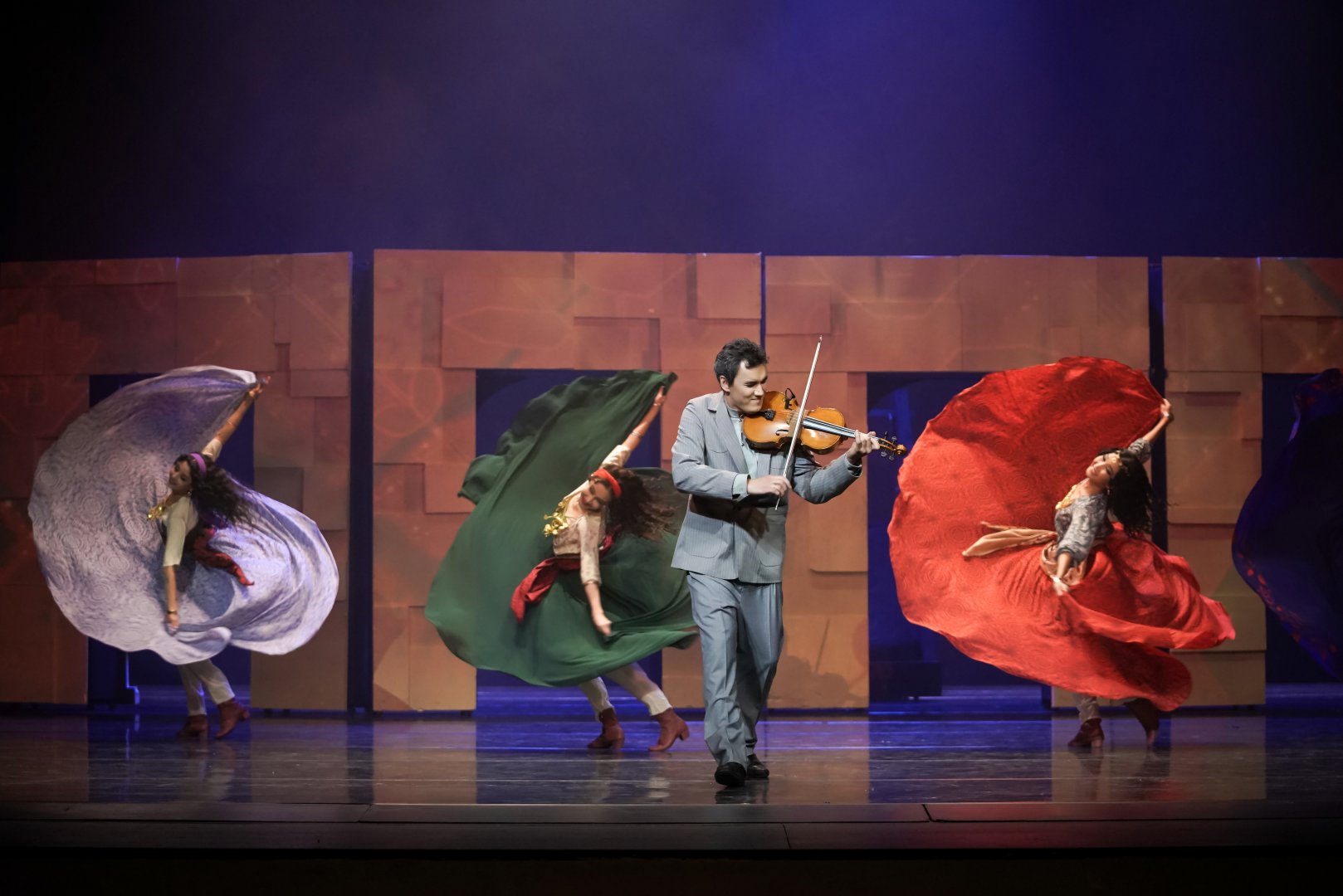 С первых минут зрители словно переносятся в другой мир - туда, где нитями искусства переплетаются Восток и Запад, когда мелодии, вдохновлённые национальными мотивами, создают ощущение древней легенды, ожившей на сцене. Каждый танцевальный эпизод напоминает узор на старинном ковре - многослойный, полный скрытых смыслов и тонких переходов. Более того, это великолепные режиссёрские решения, когда даже антураж сцены вместе с участниками передвигается по сцене, вливаясь в единство хореографического волшебства. Кроме того, действие происходит не только на сцене, но и над ней - на специально созданной платформе, что усиливает ощущение пространства и многомерности.