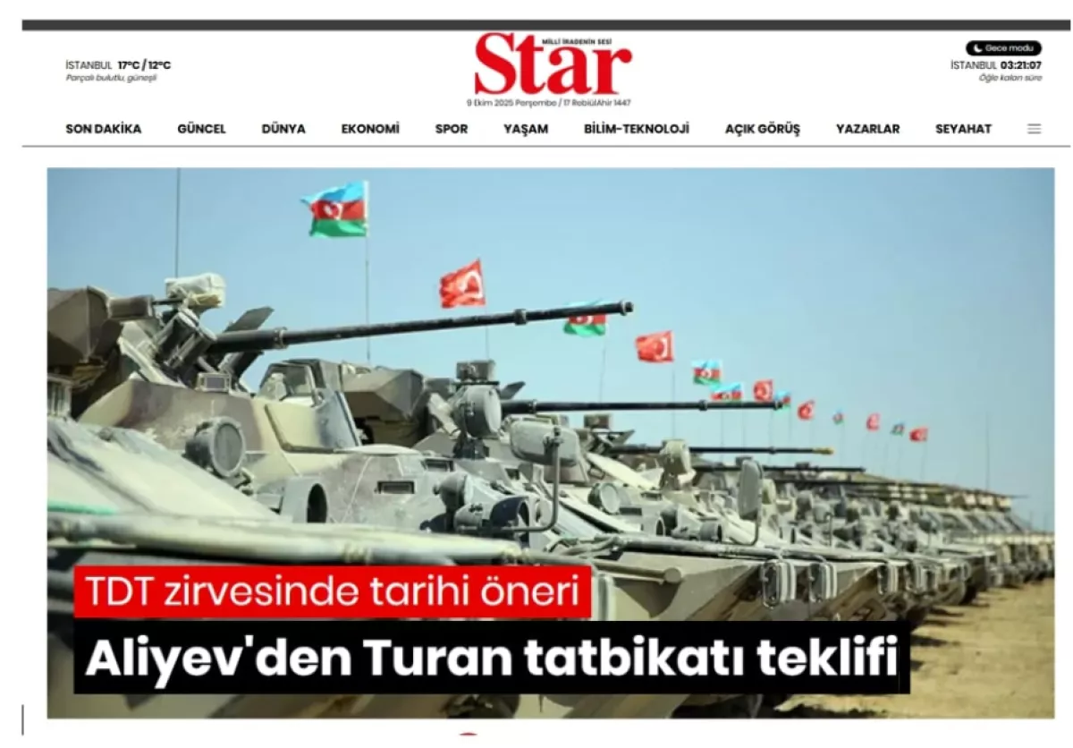 Авторы публикаций акцентировали внимание на предложении президента Ильхама Алиева по проведению в 2026 году в Азербайджане совместных военных учений государств-членов Организации тюркских государств.